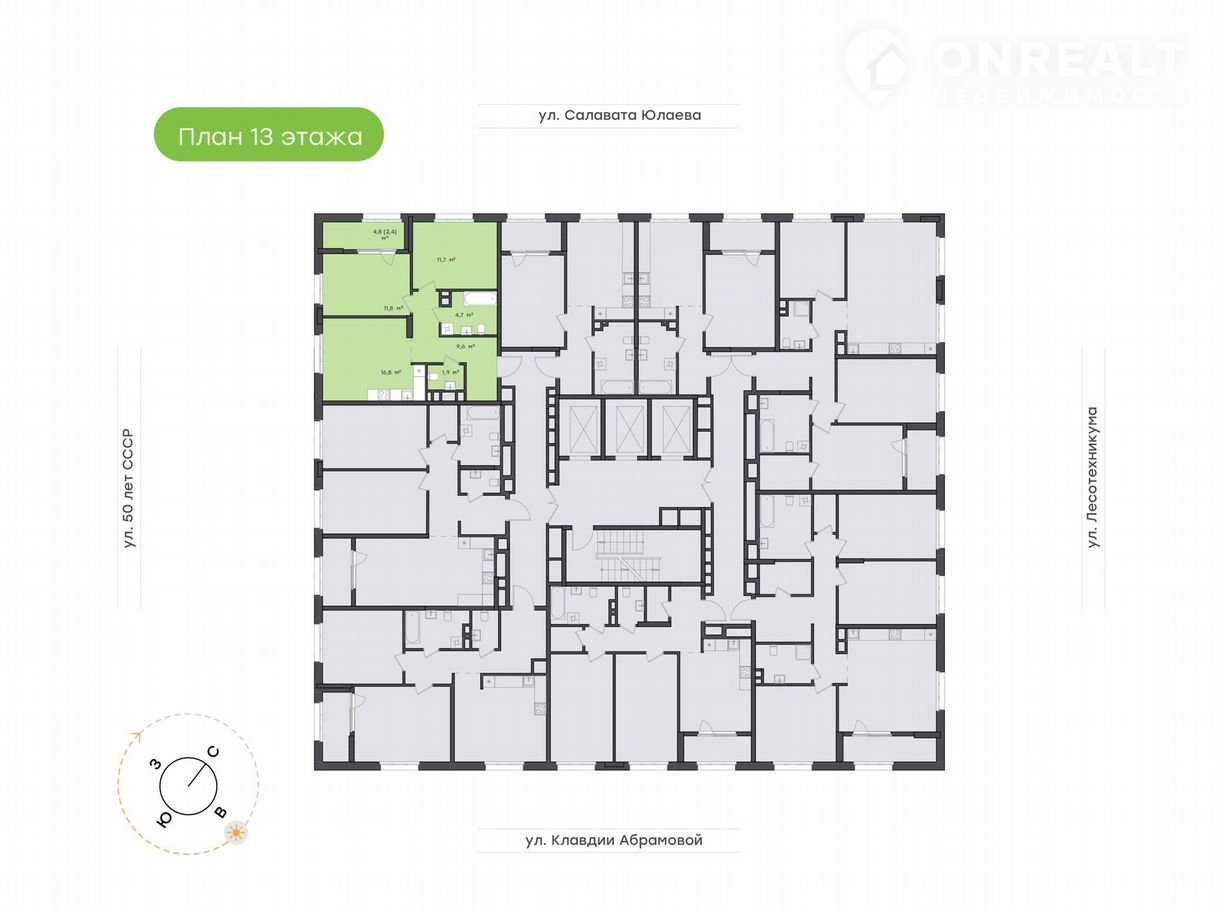 2-комнатная квартира, 58.9 м2, этаж 13 / 25, на продажу в Уфе, жилой комплекс Бионика Парк, 3