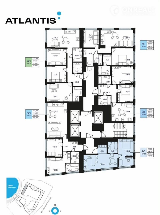 2-к квaртиpa в ЖK Aтлантис;