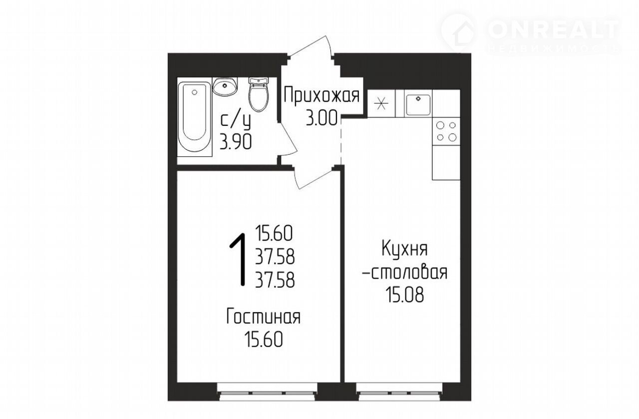 Общая площадь 37.6 м2