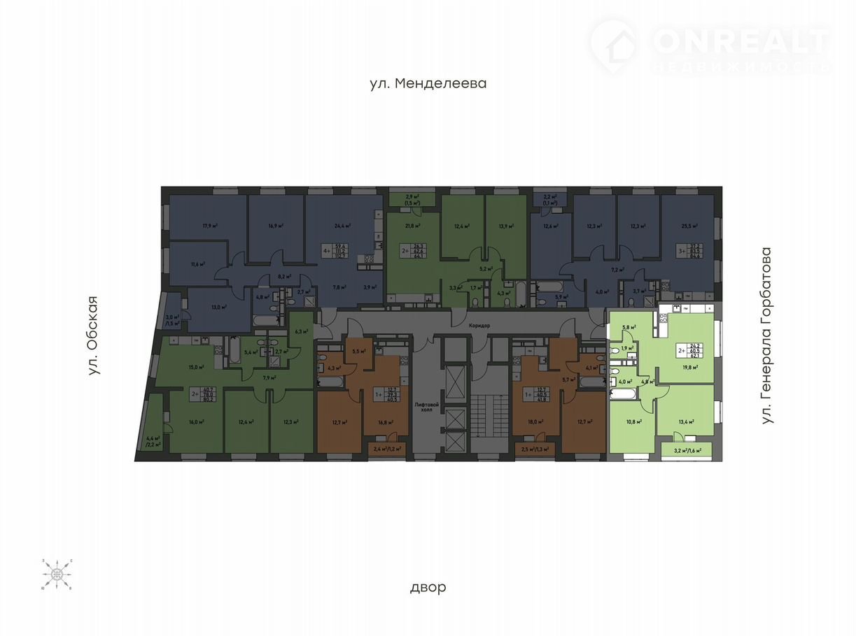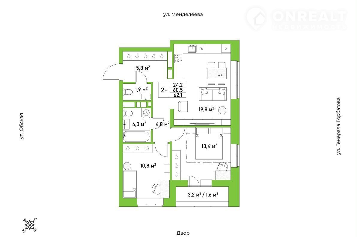 Общая площадь 62.1 м2