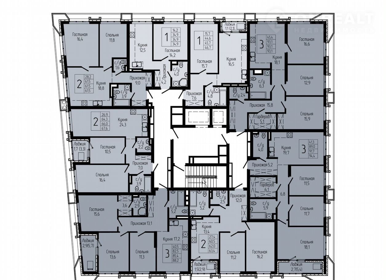 Общая площадь 61.5 м2