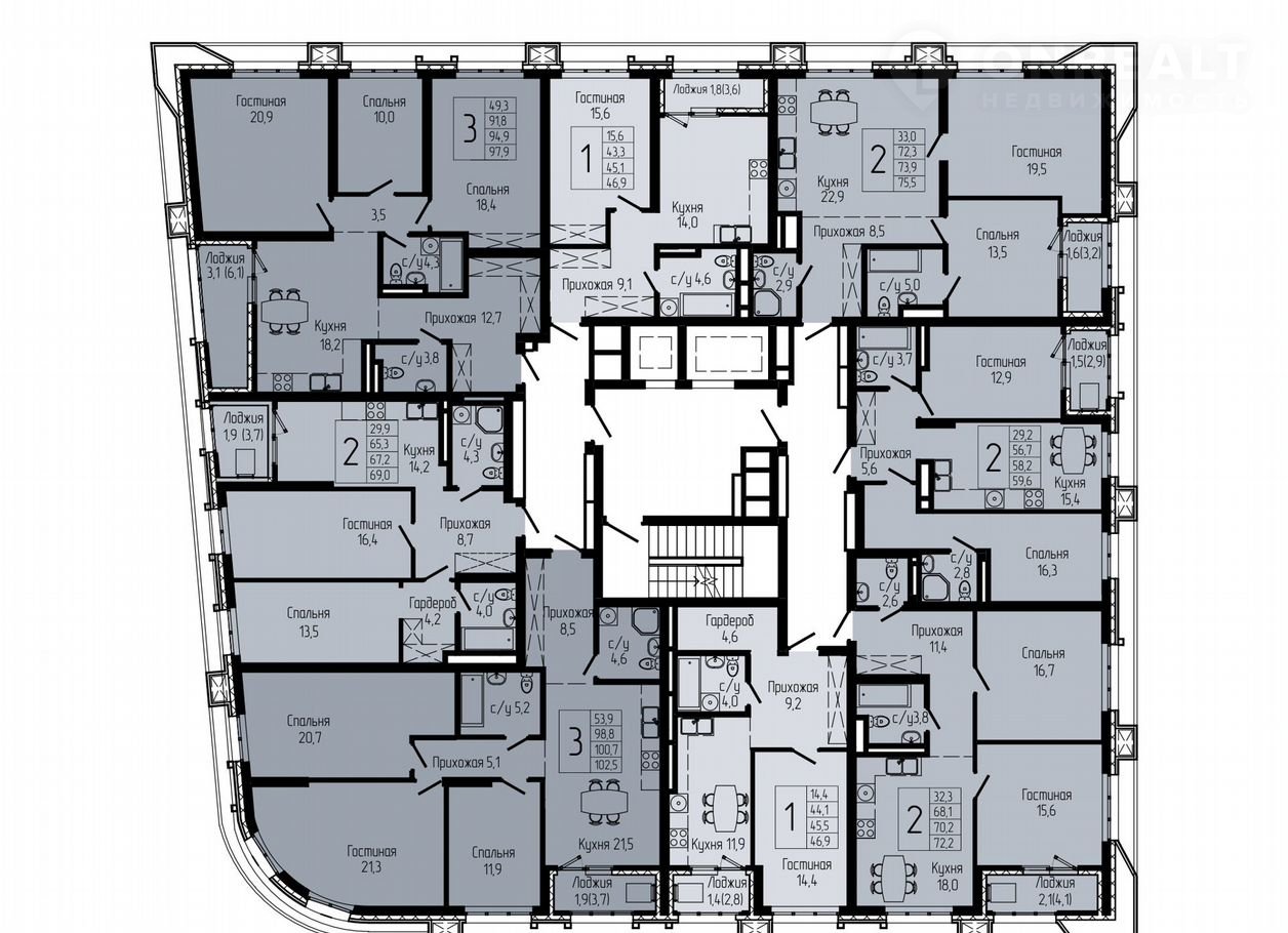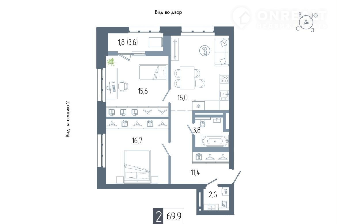 Общая площадь 69.9 м2