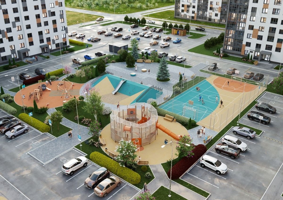 Дворы и территория вокруг кварталов выглядят стильно и современно. Здесь каждый сможет найти место для отдыха, спорта, игр или спокойных прогулок.