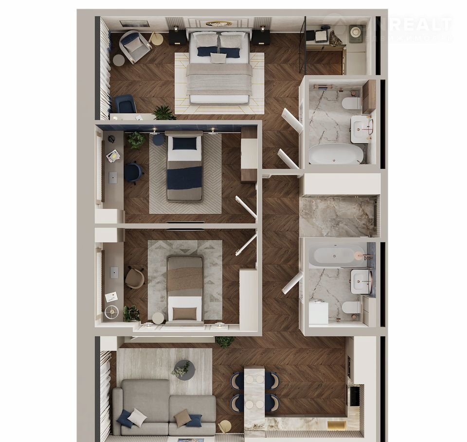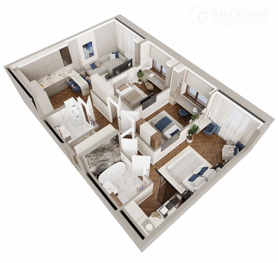 Просторные кухни-гостиные до 50 м², мастер-спальни с собственными ванными комнатами, квартиры с эркерами, ванные комнаты с окнами и еще более 20 вариантов планировочных решений.