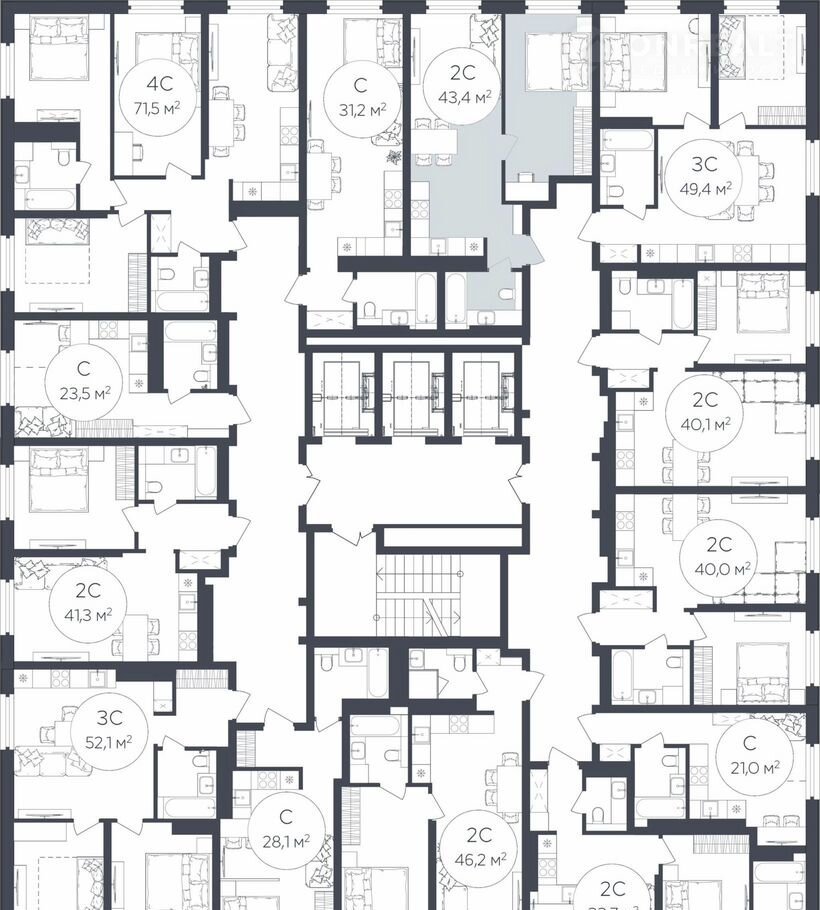 Общая площадь 43.4 м2