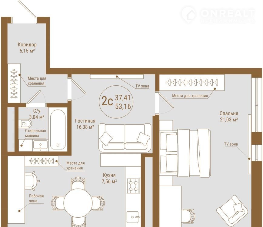 — Площадь квартиры – 53,16 м²