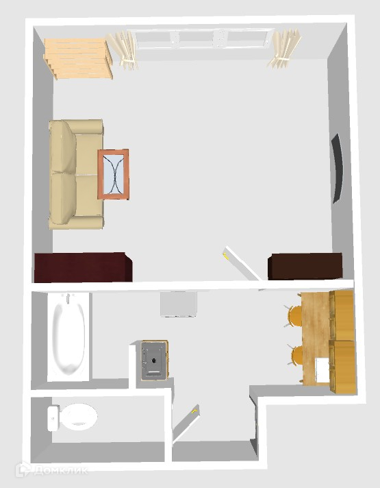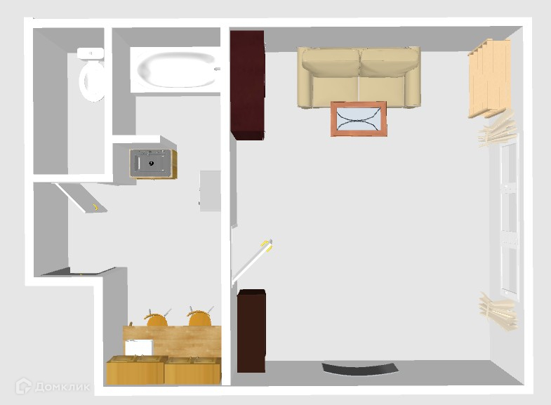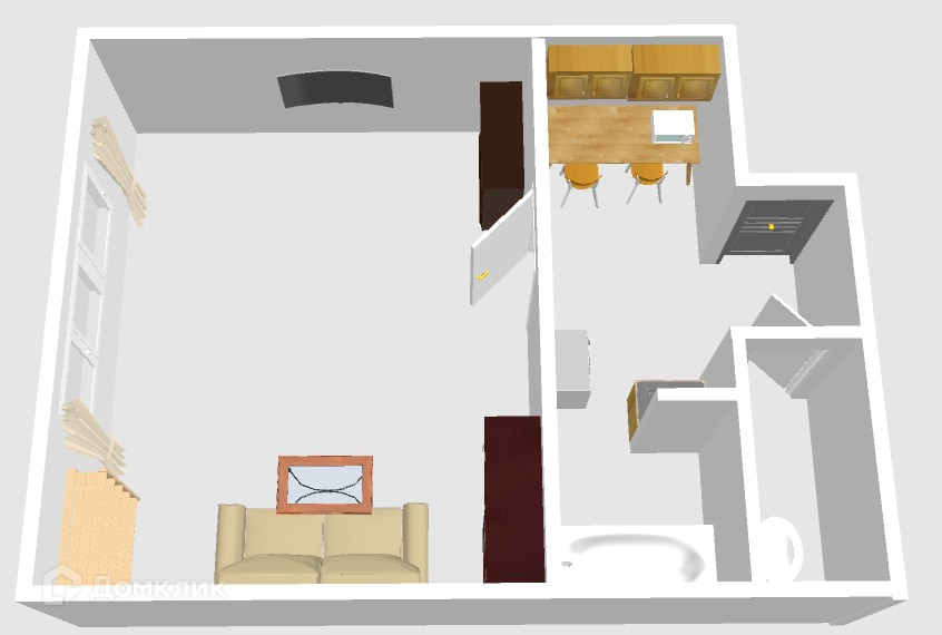Общая площадь студии 18,6 кв.м