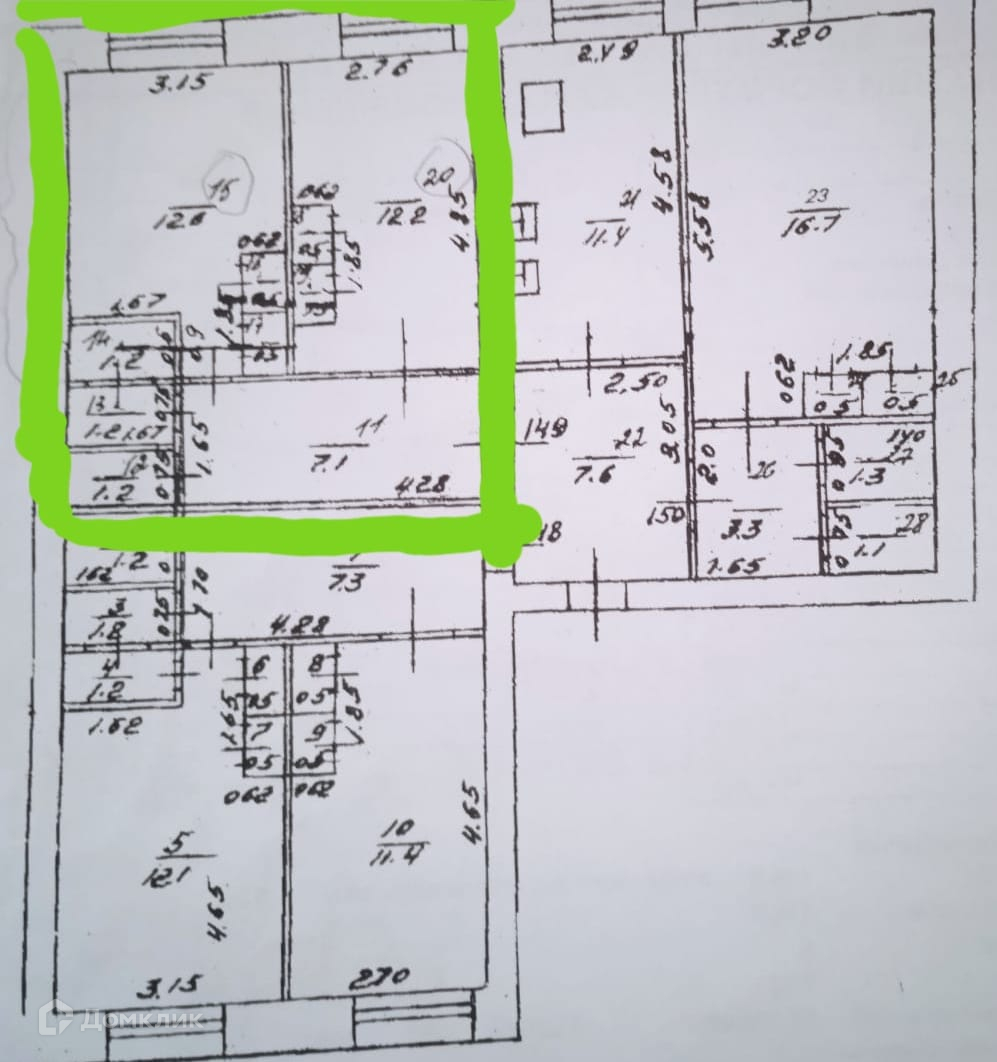 В блоке 3 квартиры. Общая площадь с учетом коридора видна на фото планировки: 34,3 кв м. Также новый собственник будет пользоваться площадью общей кухни и общего коридора.