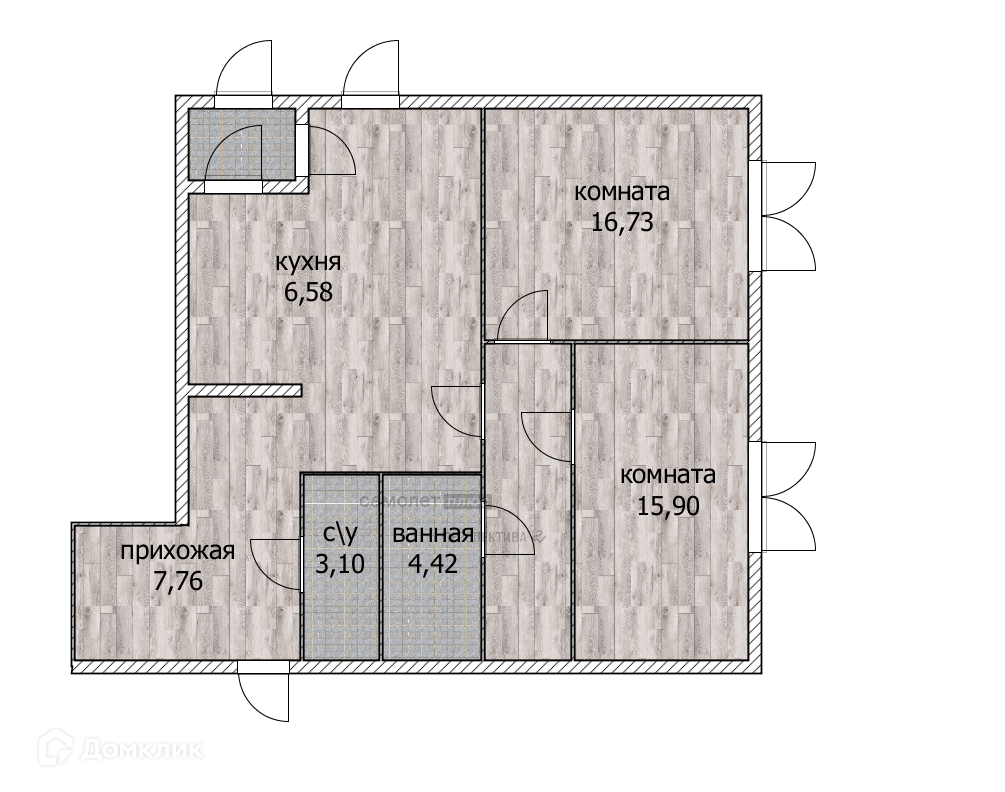 Жилая площадь 54.1 м2