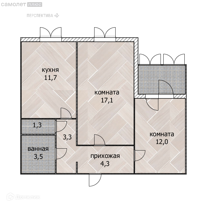 - удобная прихожая 4,3+3,3 кв.м.