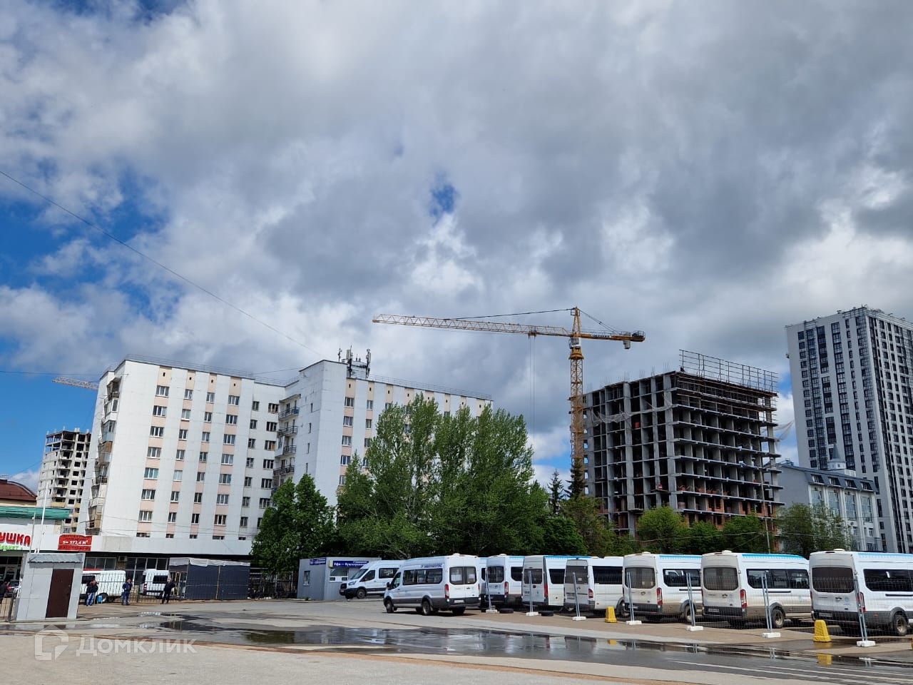В этом доме на 1 этаже супермаркет Полушка Вкус маркет, где всегда можно не только купить свежие продукты, а также перекусить.