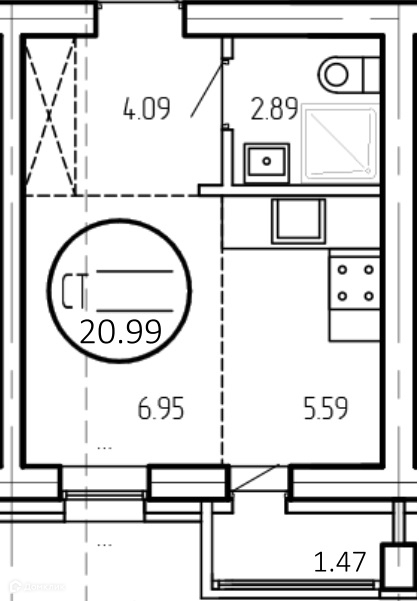 Общая площадь 20.99 м2