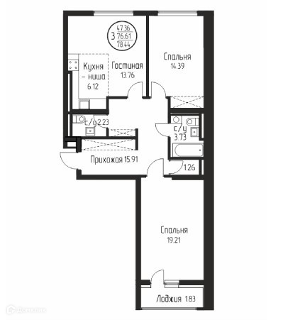Жилая площадь 76.61 м2