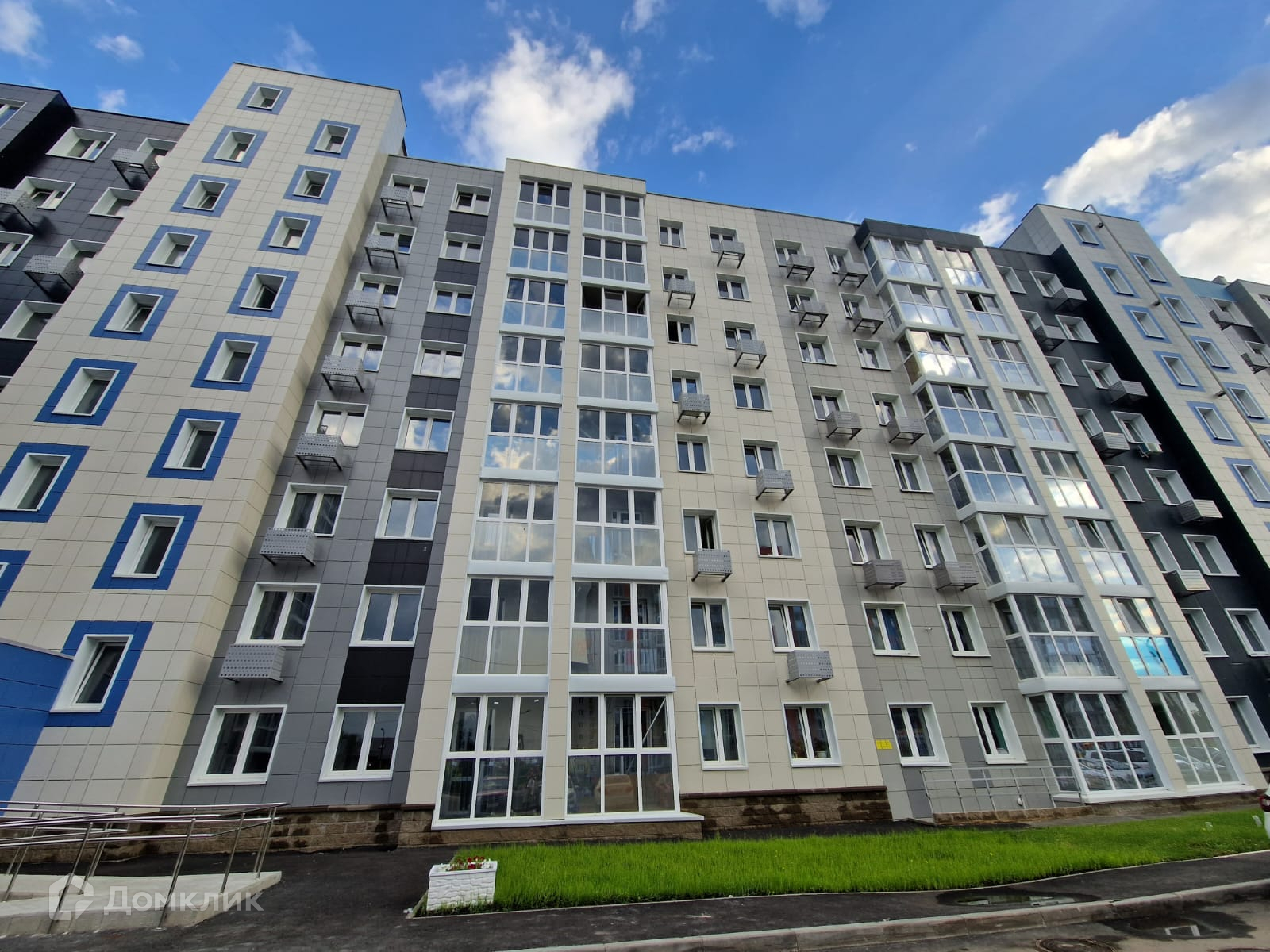 Во дворе детская площадка и спортивная площадки с тартановым покрытием.