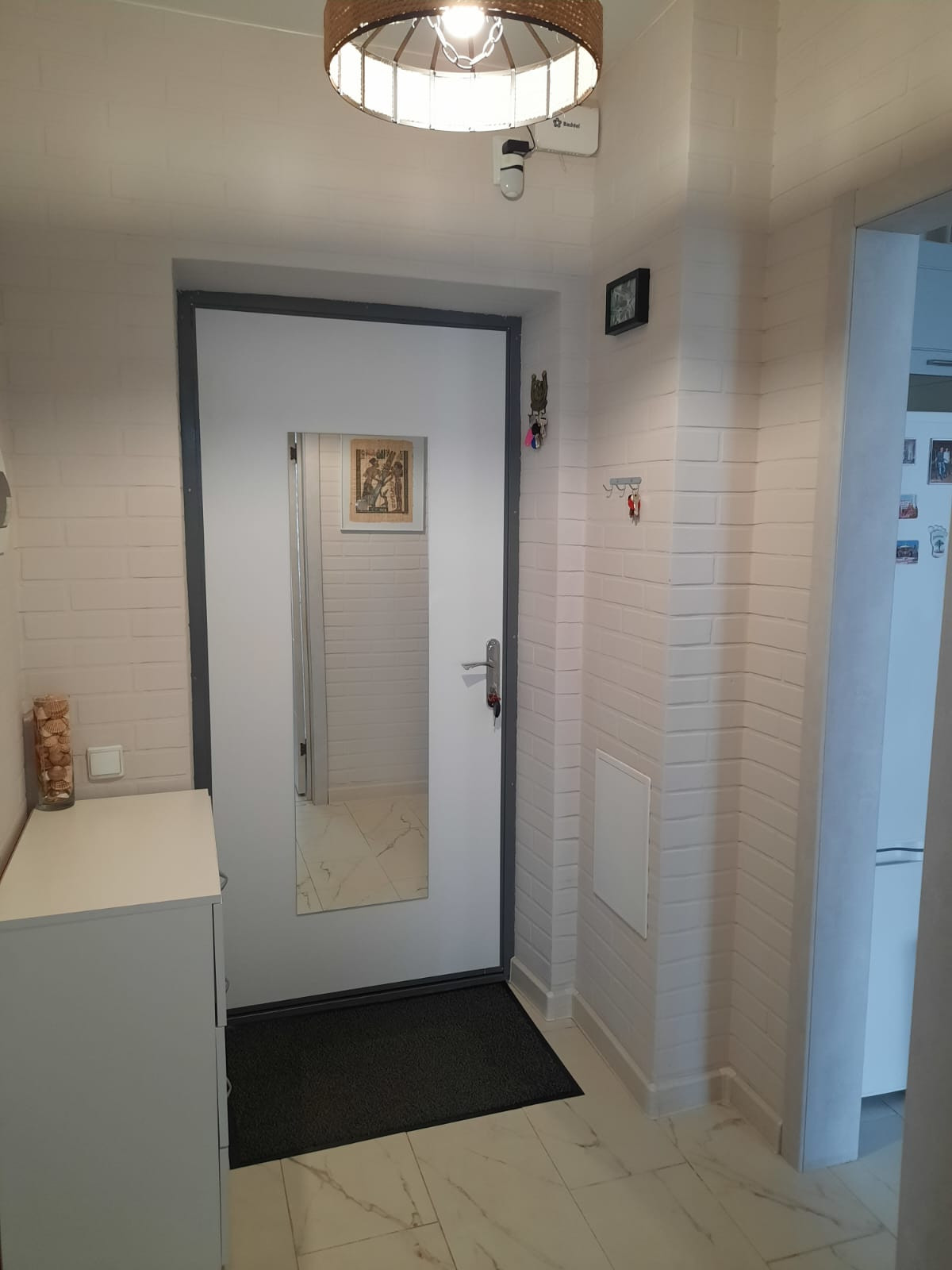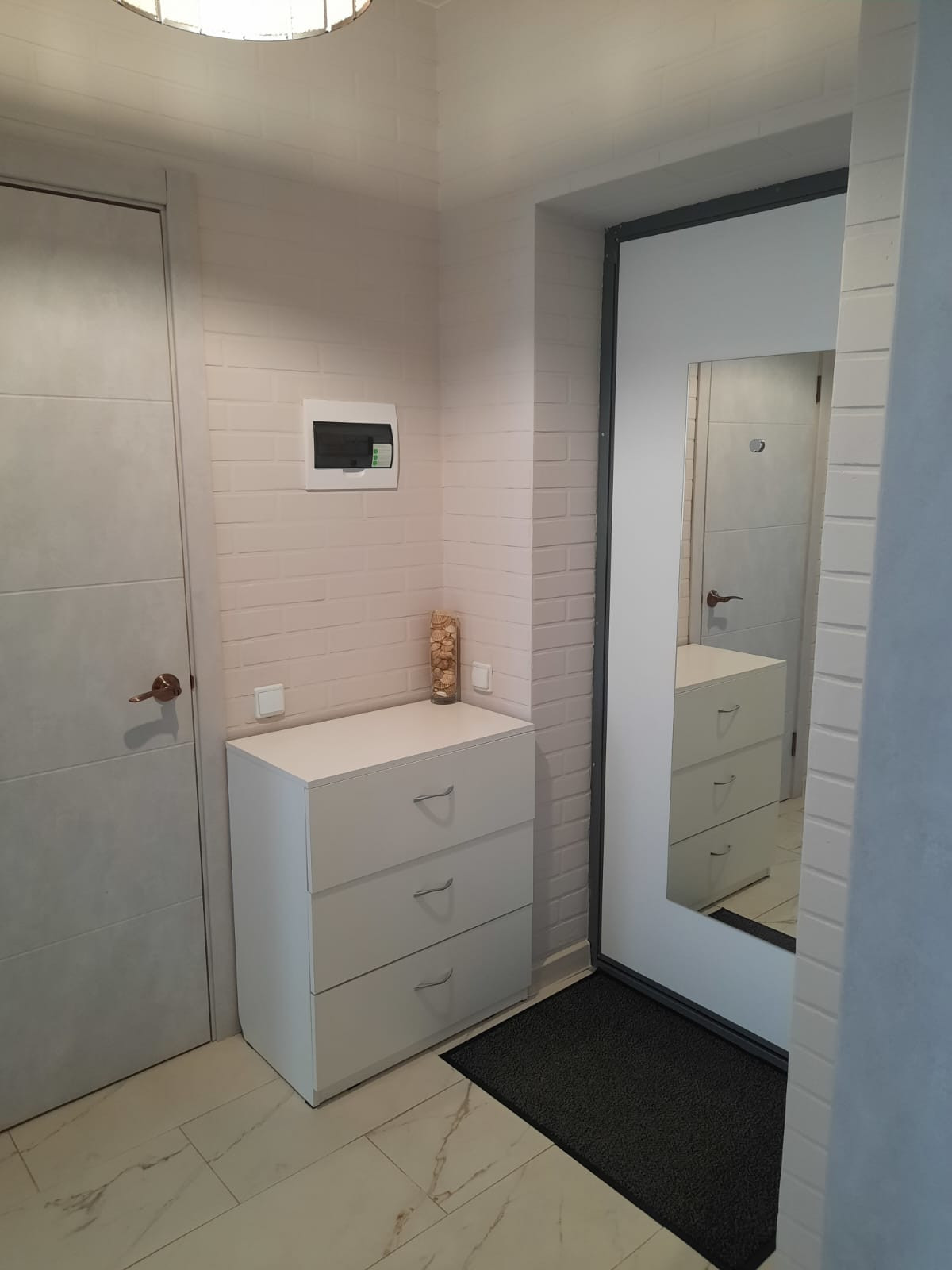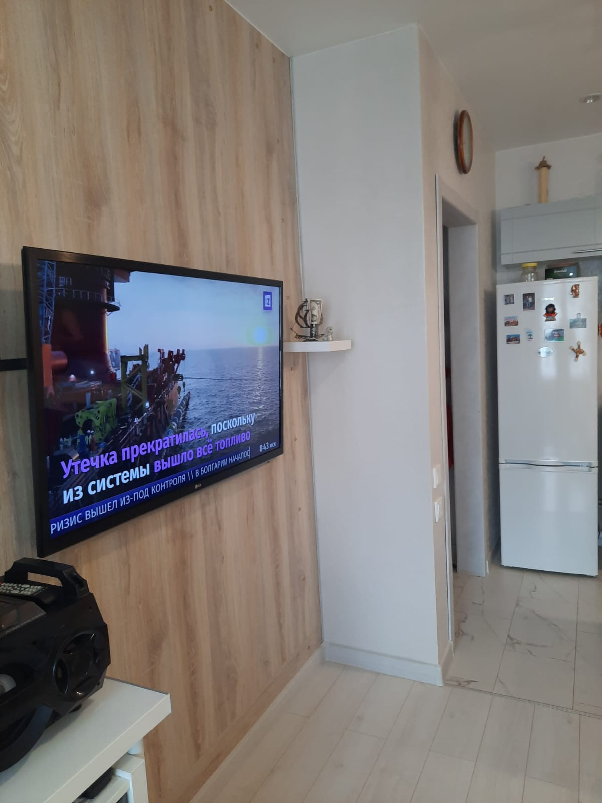 В квартире остаётся: кухонный гарнитур. Встроенный шкаф купе. Барная стойка. Вам остаётся завезти телевизор, диван, холодильник... и можно счастливо жить.