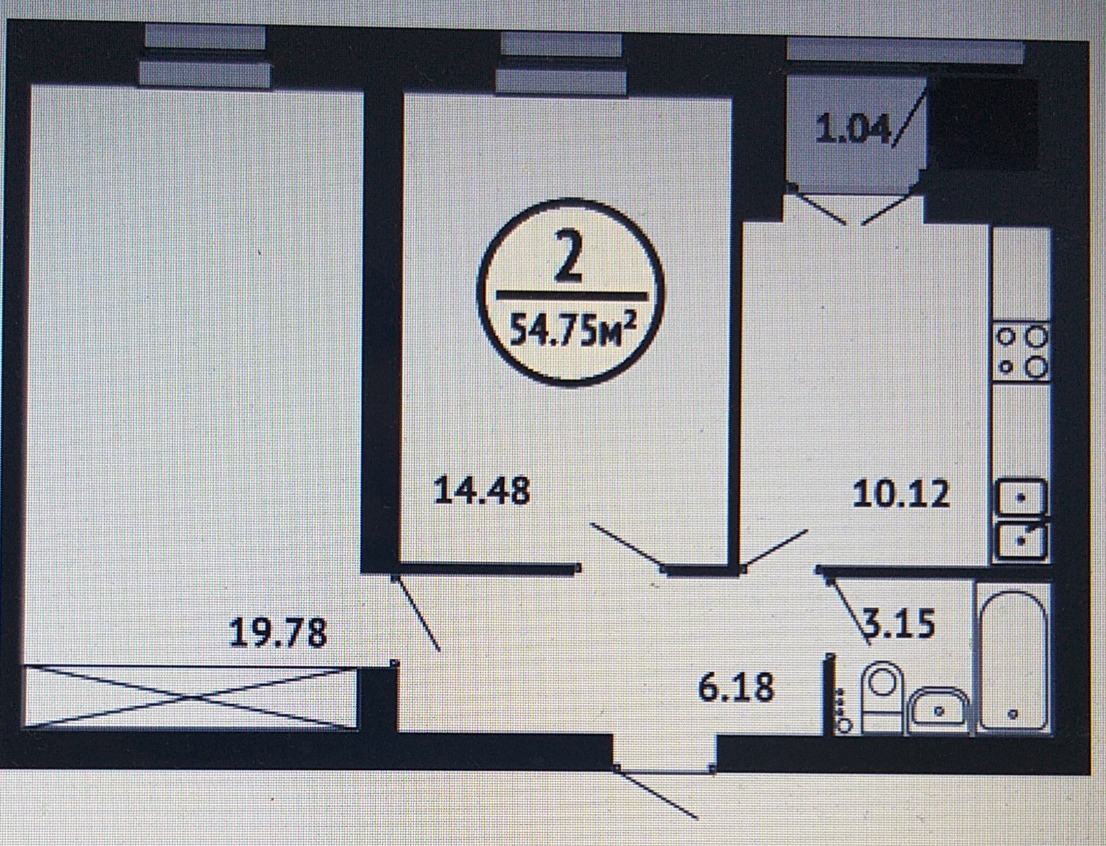 Общая площадь 55.16 м2