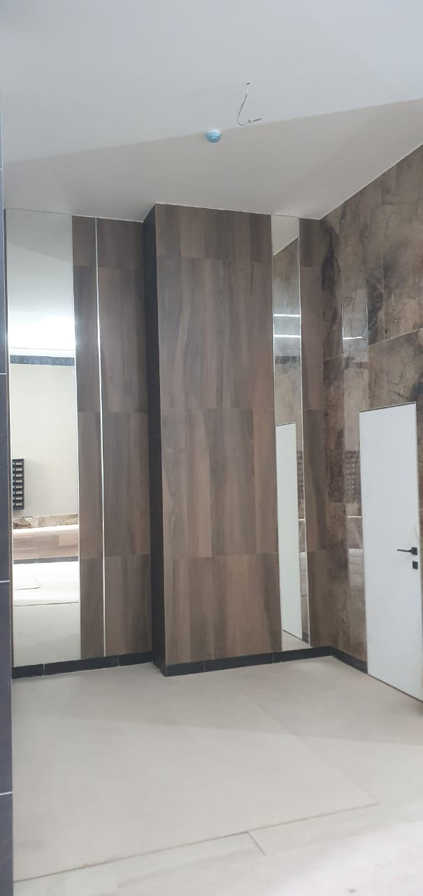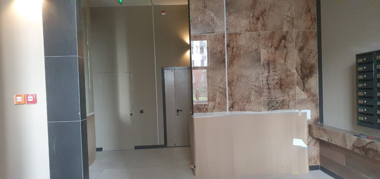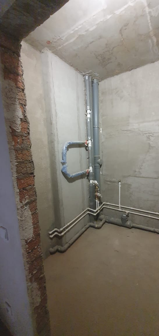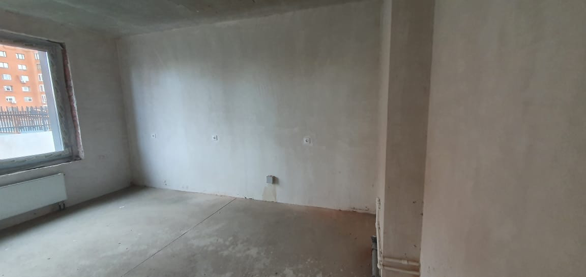 Полусухая стяжка пола, выровненные по маякам стены, высококачественная предчистовая отделка.