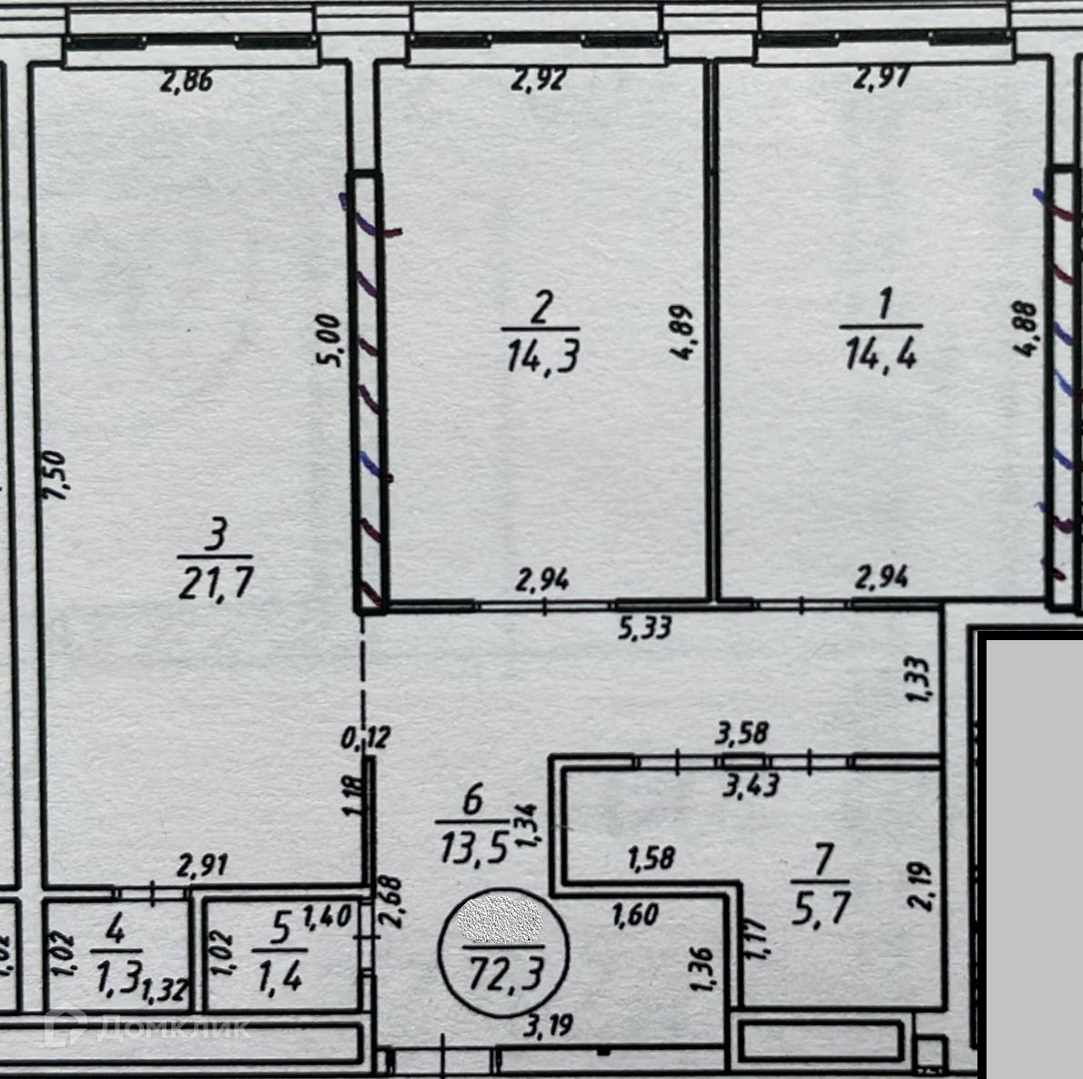 Общая площадь 72.3 м2