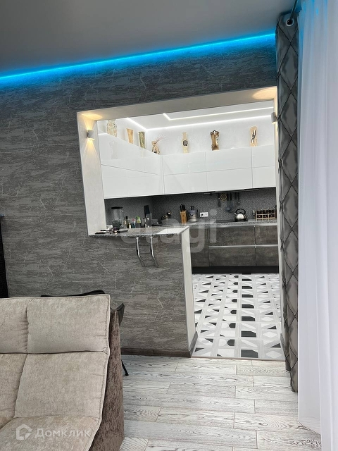 - Большая и удобная гостиная с выходом на кухонную зону