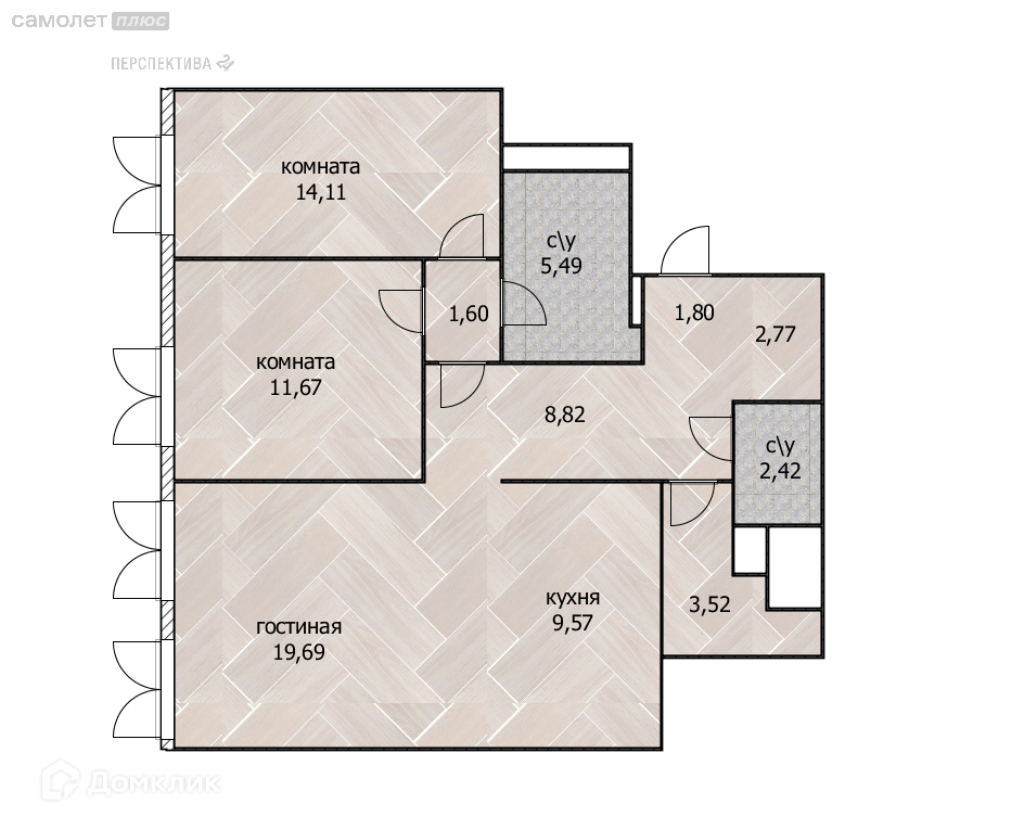 Общая площадь 81.6 м2
