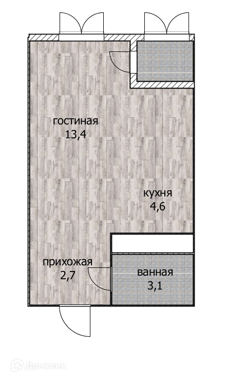 Жилая площадь 13.4 м2