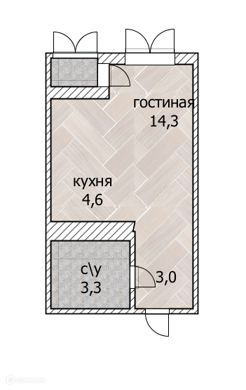 Общая площадь 25.8 м2