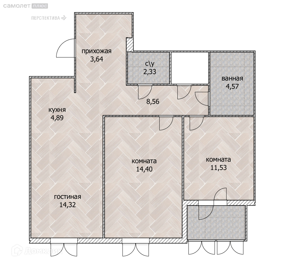 - две изолированные комнаты: 14,40 кв.м, 11,53 кв.м