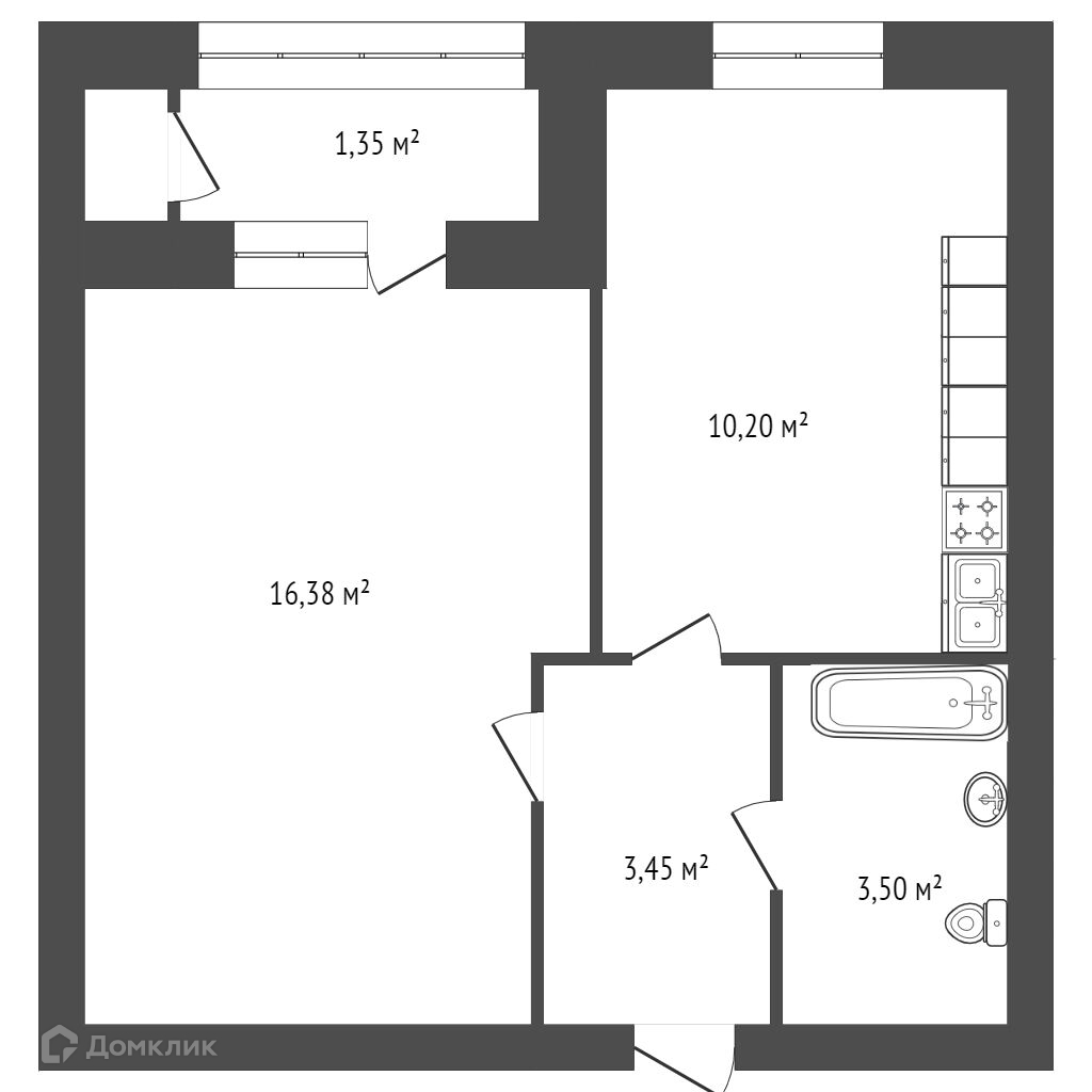 Общая площадь 34.9 м2