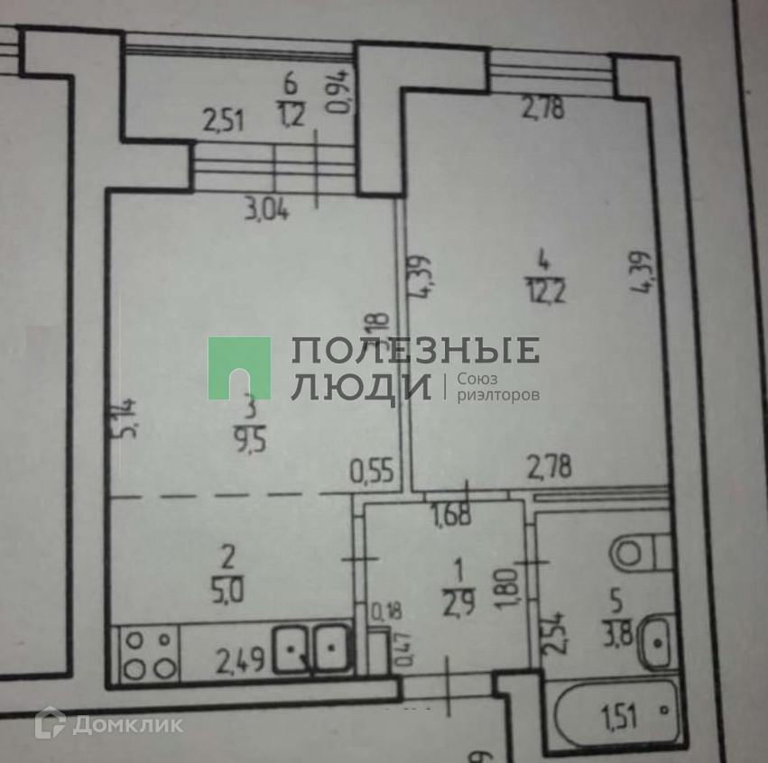 Жилая площадь 21.7 м2
