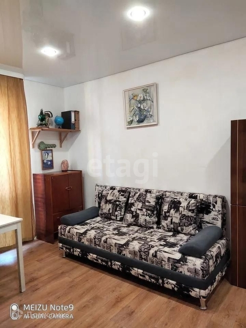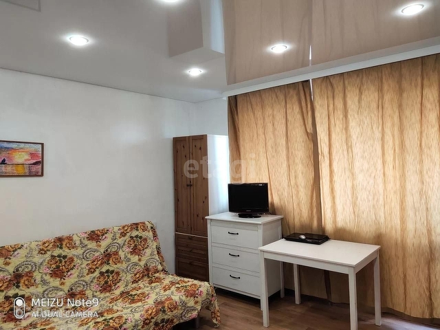 Состояние квартиры: натяжной потолок в комнате и коридоре, на полу в коридоре и ванной напольная плитка, на полу в комнате линолеум, стены окрашены акриловой моющейся краской, пол в коридоре теплый в связи с тем, что там проходят трубы отопления,