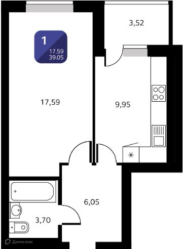 Общая площадь 39.05 м2