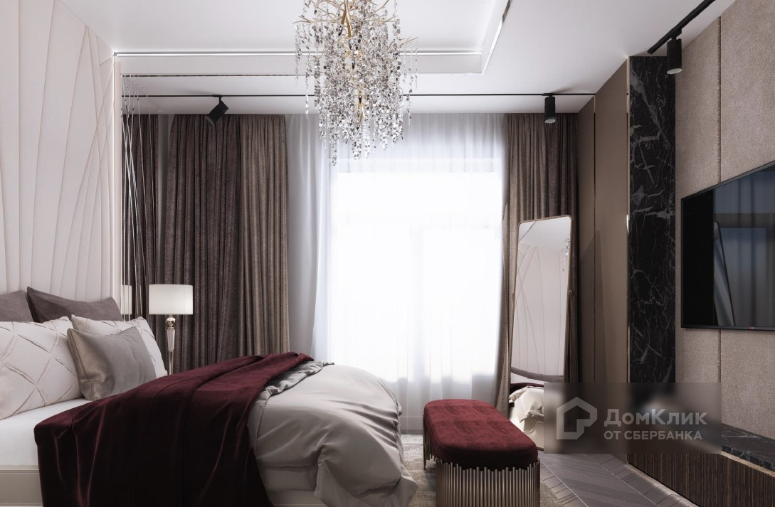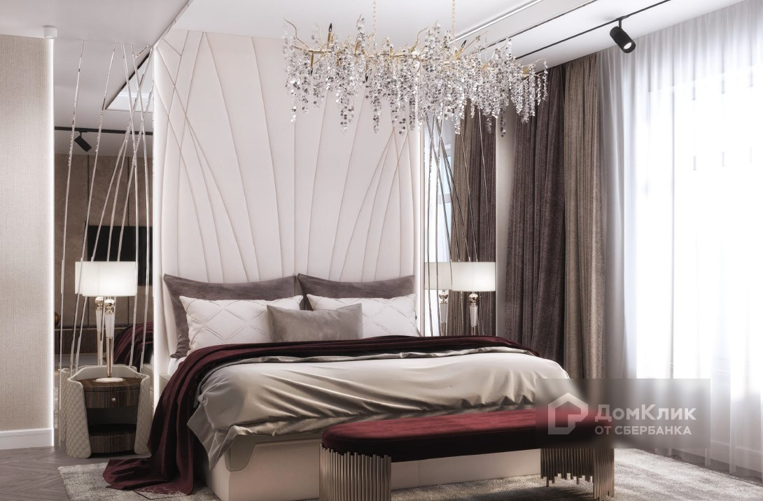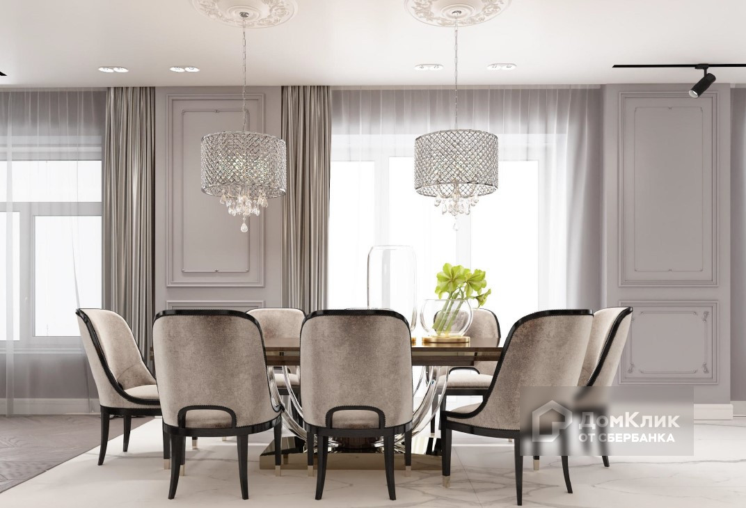 На стенах декоративная штукатурка, заказаны багеты, розетки, лепнина. Установлены настенные светильники.