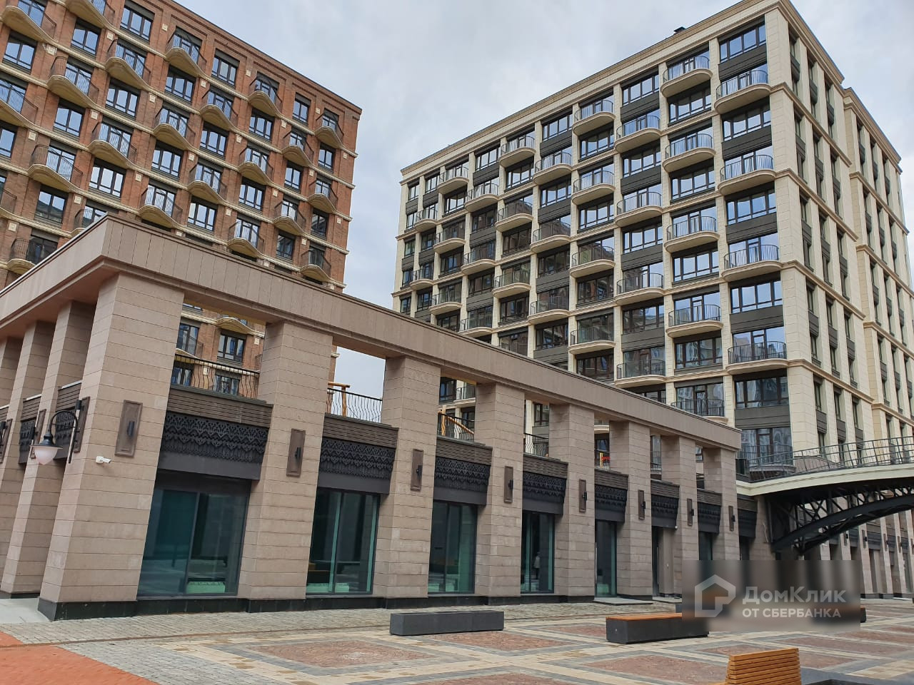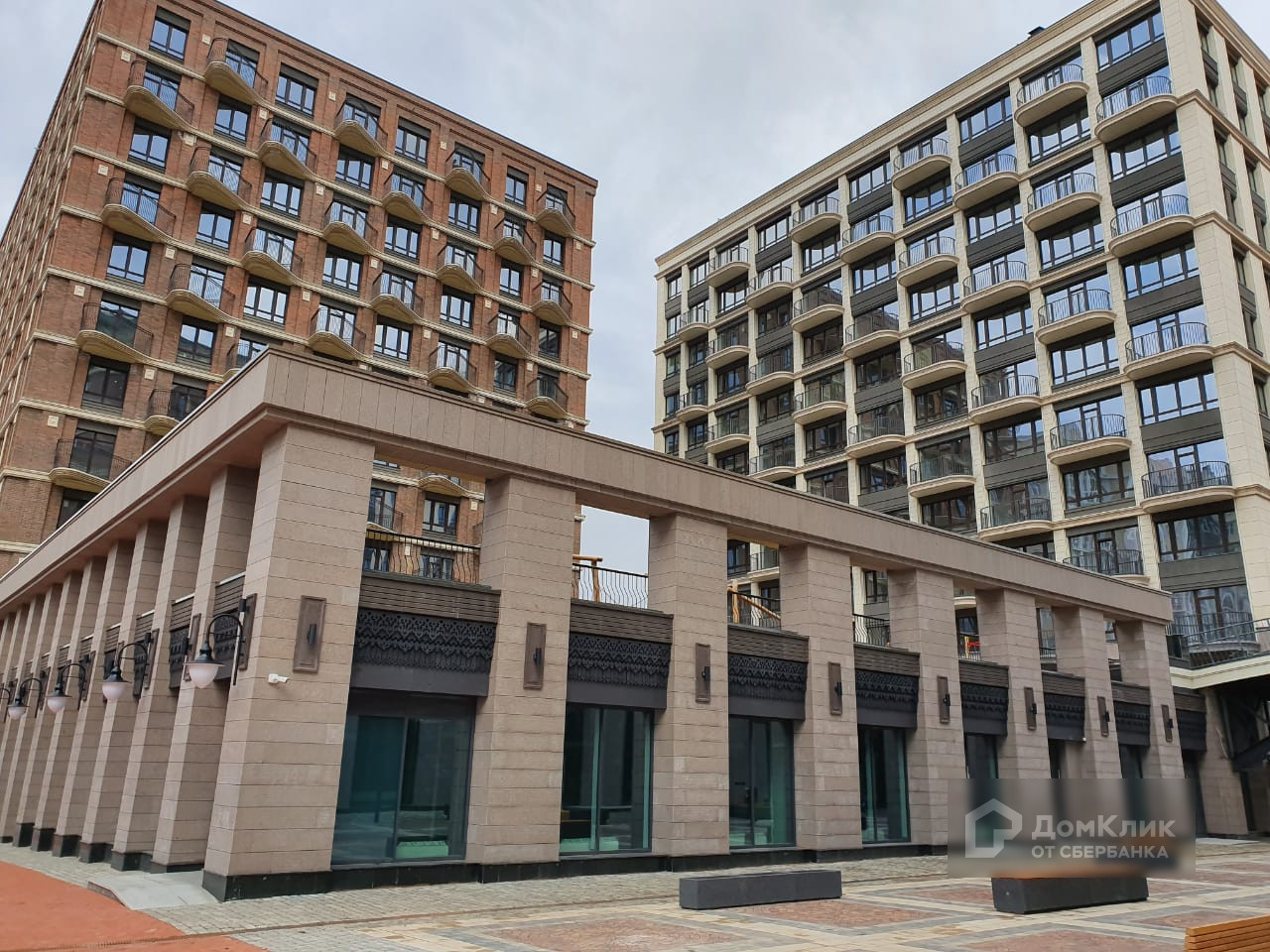 На первых этажах комплекса реализована концепция торговой улицы с бутиками одежды, продуктовыми магазинами, ресторанами, кофейнями, отделениями банков и аптеками.