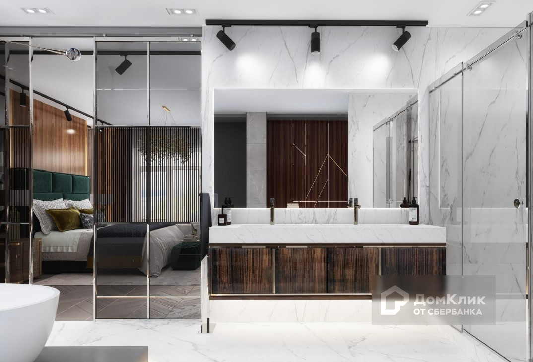Выполнен ремонт в санузлах, на полу керамогранит фабрик Atlas Concorde и Estima Vision, плитка Fabbrica Marmi e Graniti (Италия), установлены импортная сантехника, ванна, фреска Wall Street, душевые кабины с терморегуляторами (все кроме стеклянных перегородок).
