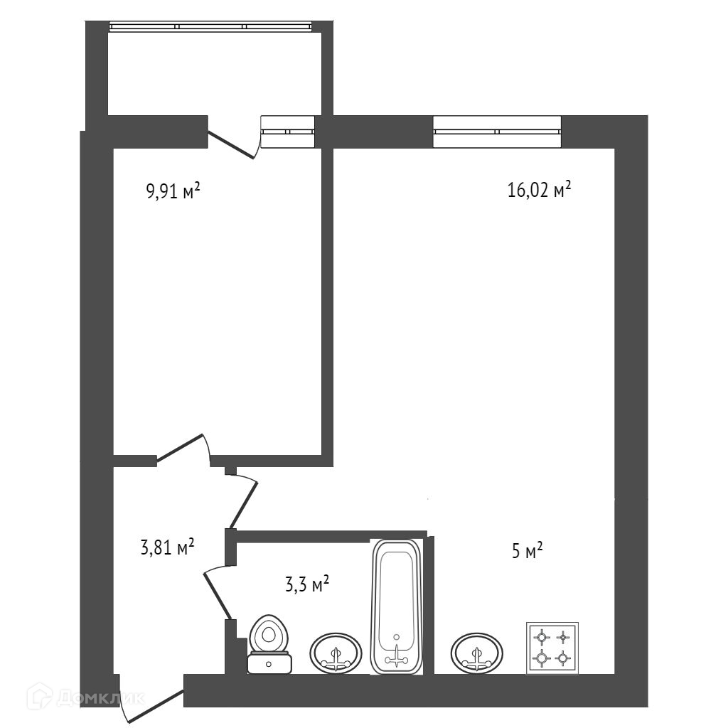 Балкон, лоджия 1 балкон