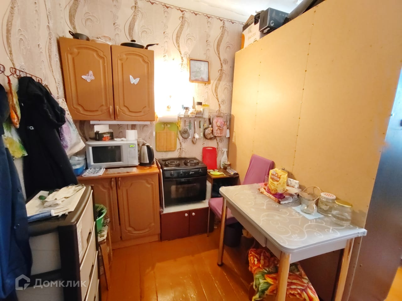 ✅ отделка – чистовая, фото оригинальные. Вложений не требуется. Потолки чистовые, поклеены обои, на полу линолеум, установлена дверь. При продаже остается кухонный гарнитур;