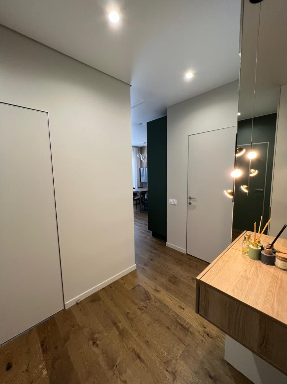 В квартире сделан дизайнерский ремонт по проекту архитектурного бюро «Фриз». Все отделочные материалы премиальных марок, высокого качества: полы - инженерная доска Lab Arte, европейская сантехника - Kludi и Remer, двери Profildoors Invisible, все светильники точечечные - Maytoni, розетки и выключатели- Schneider Odace (премиальная дизайнерская серия) .