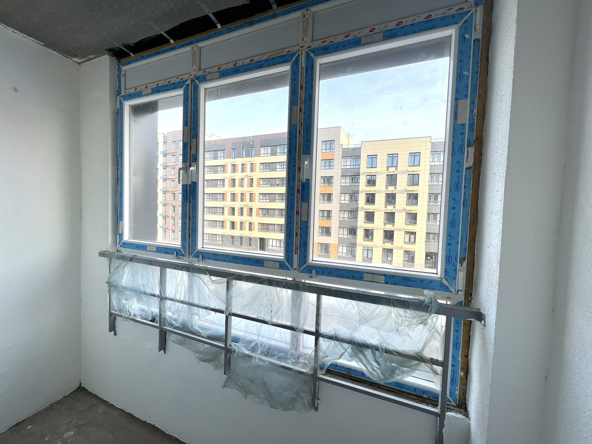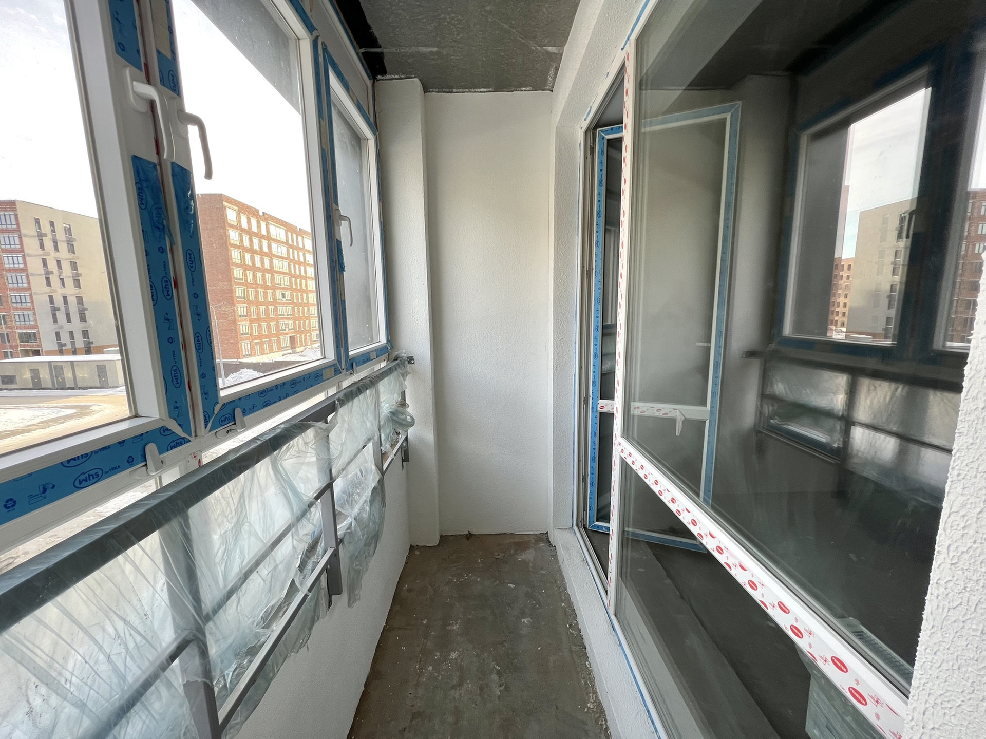 • Увеличенные оконные проёмы. Двухкамерный стеклопакеты, подоконники и откосы, застекленная лоджия.