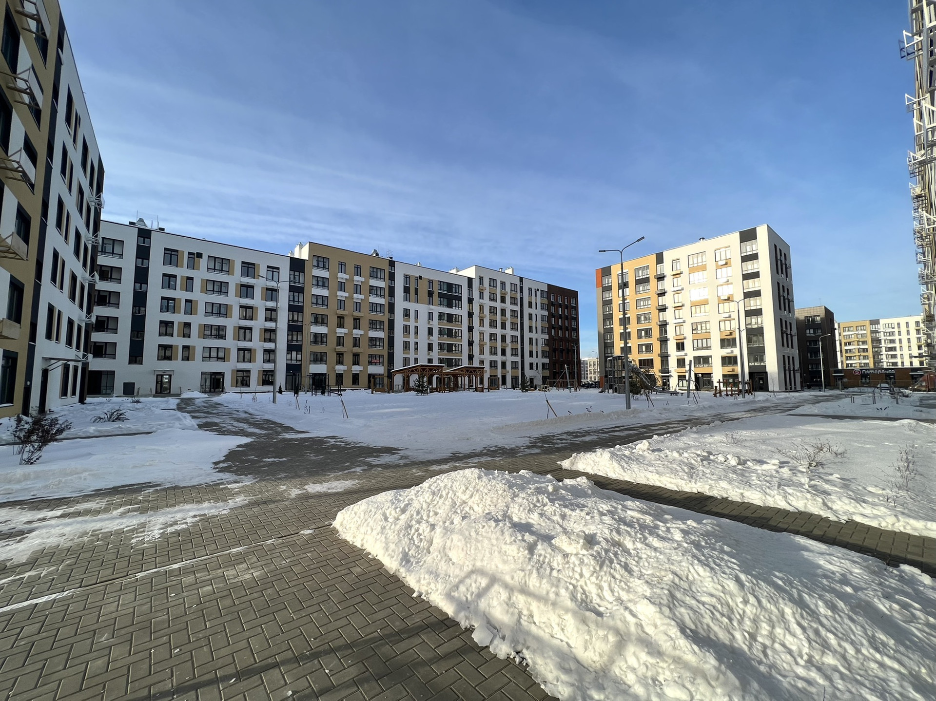 На территории ЖК магазины: "Пятерочка", "Дворик", Сбермаркет, "Пышка".