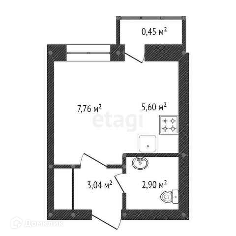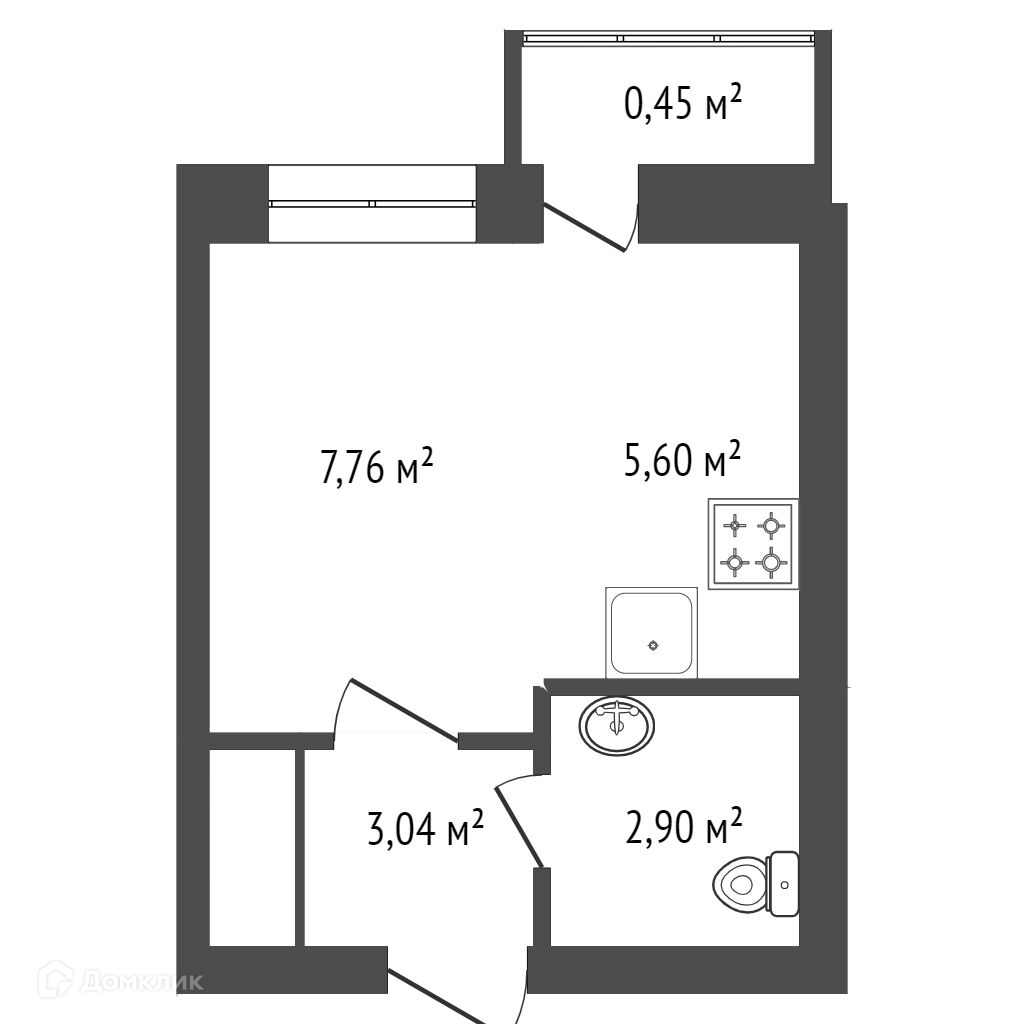 Общая площадь 19.6 м2