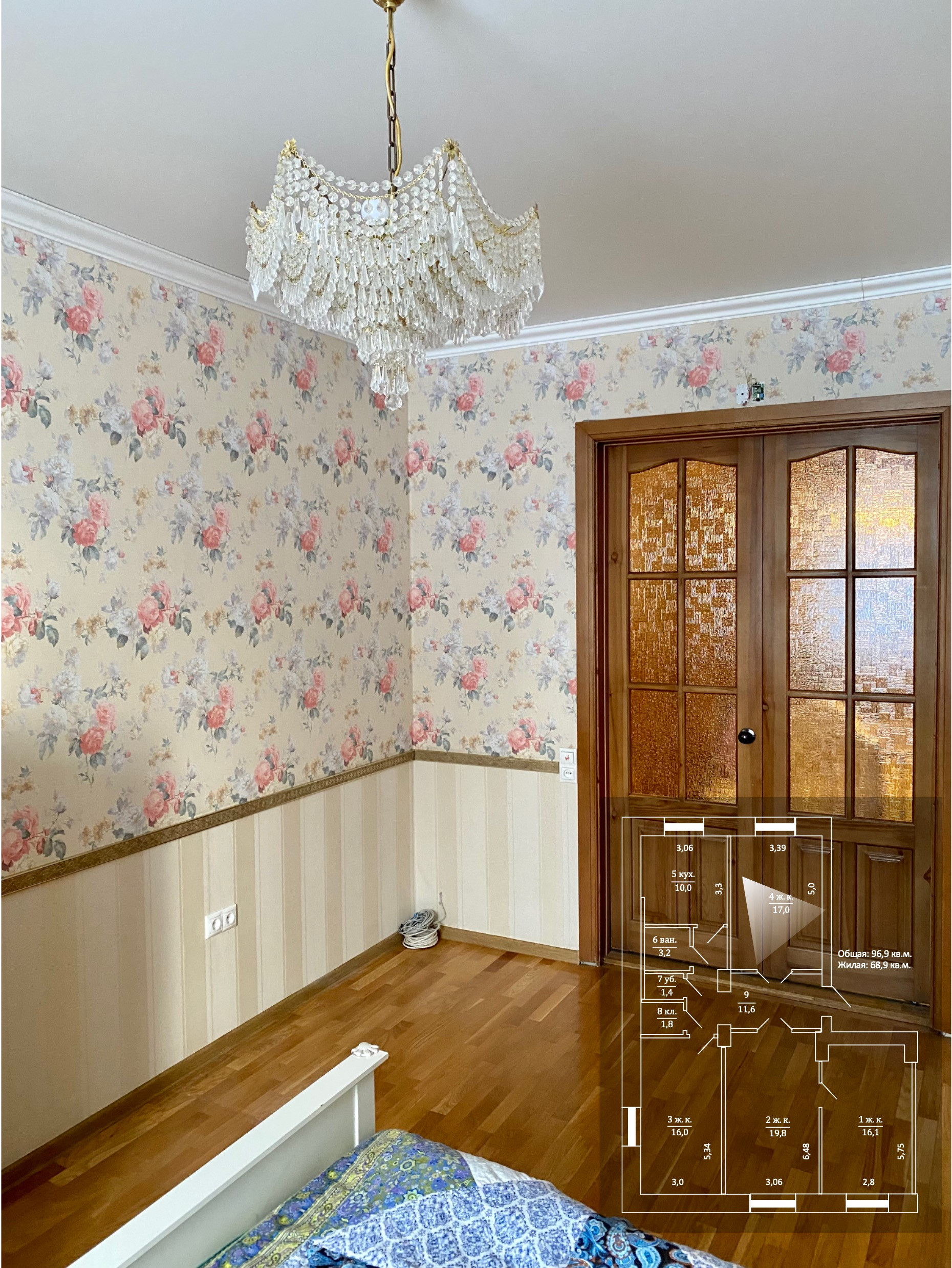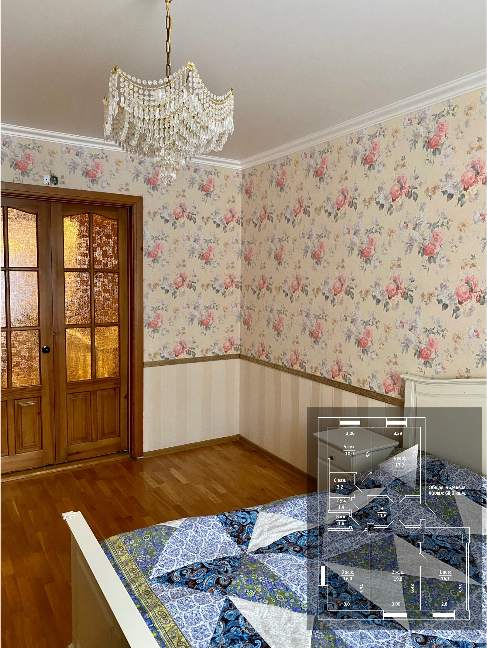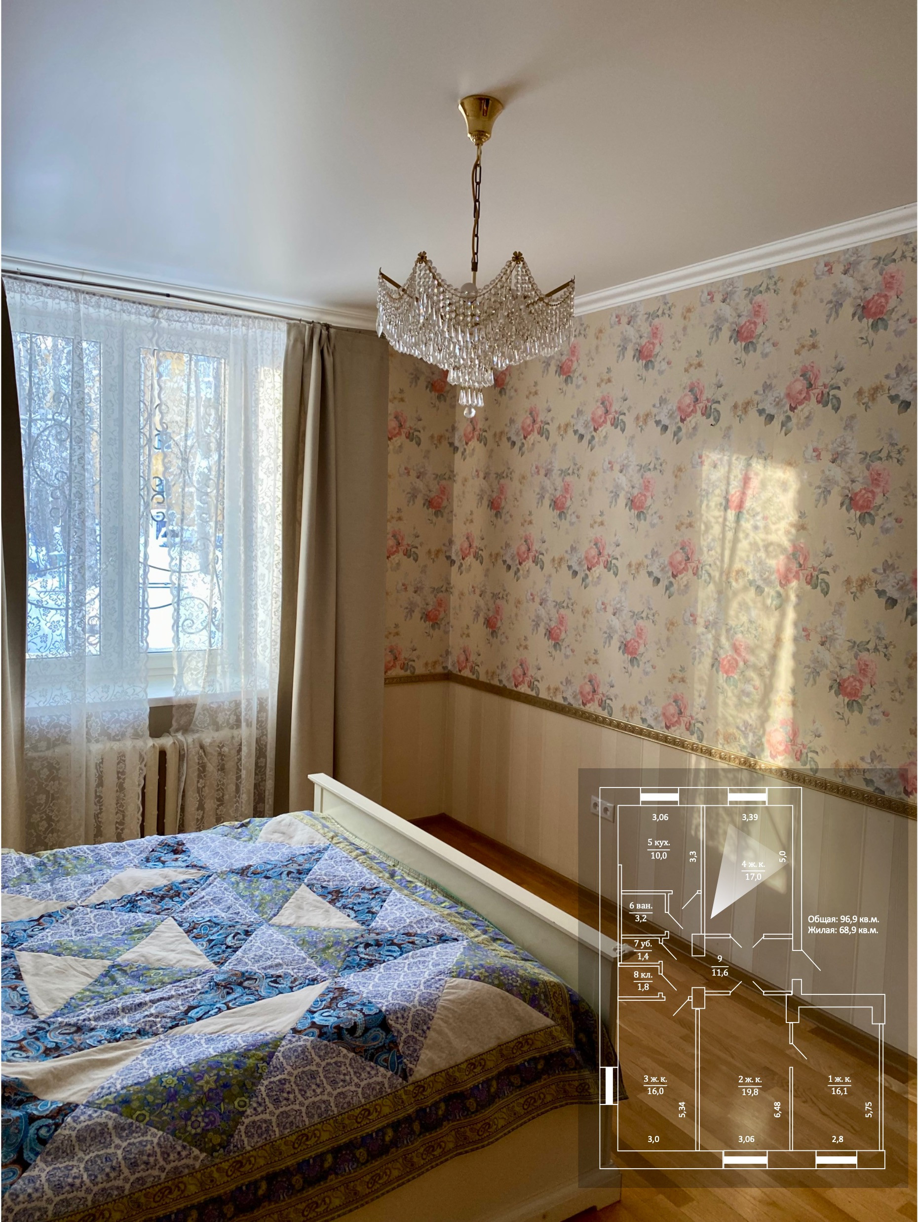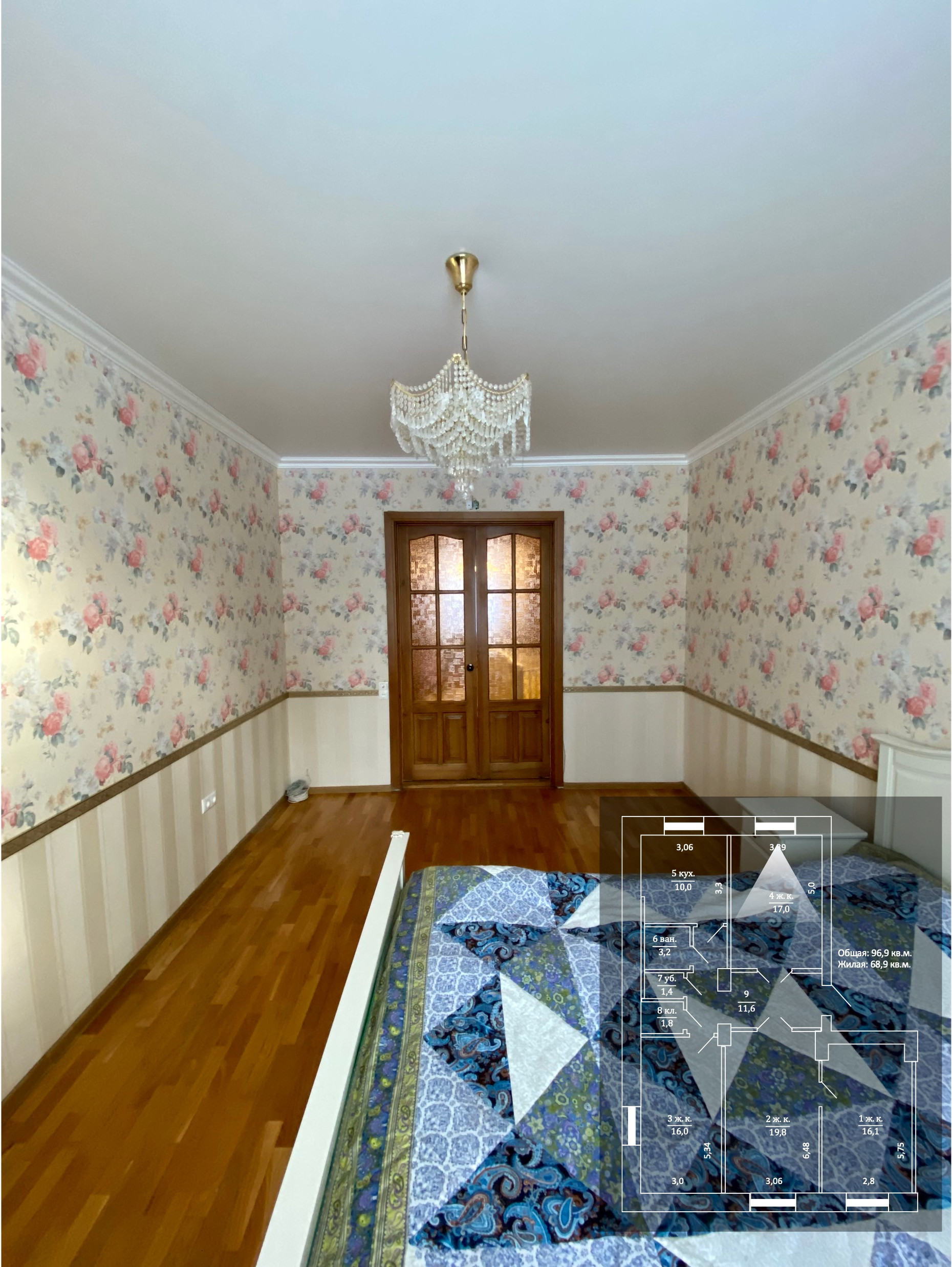 Жилая площадь 68.9 м2