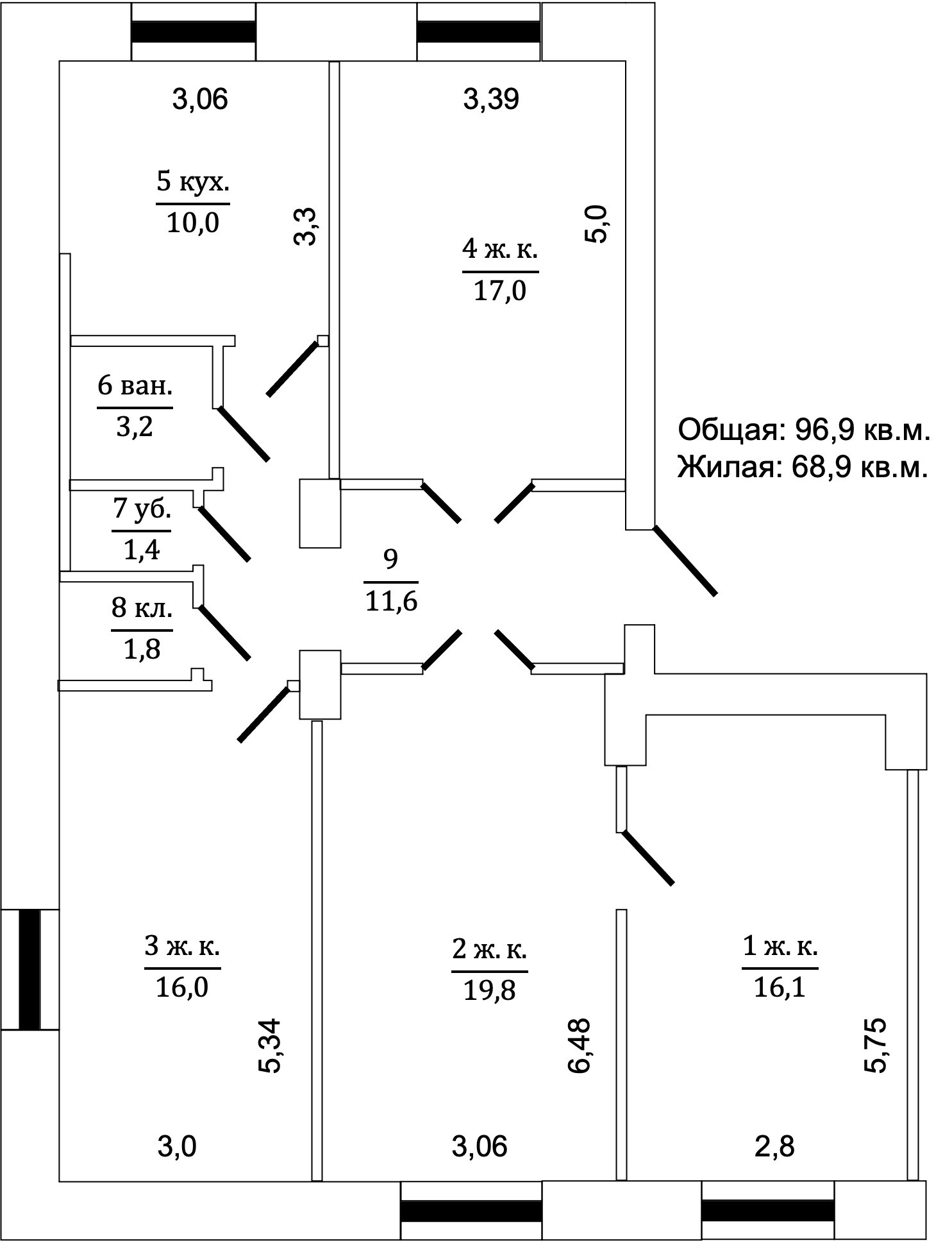 Общая площадь 96.9 м2