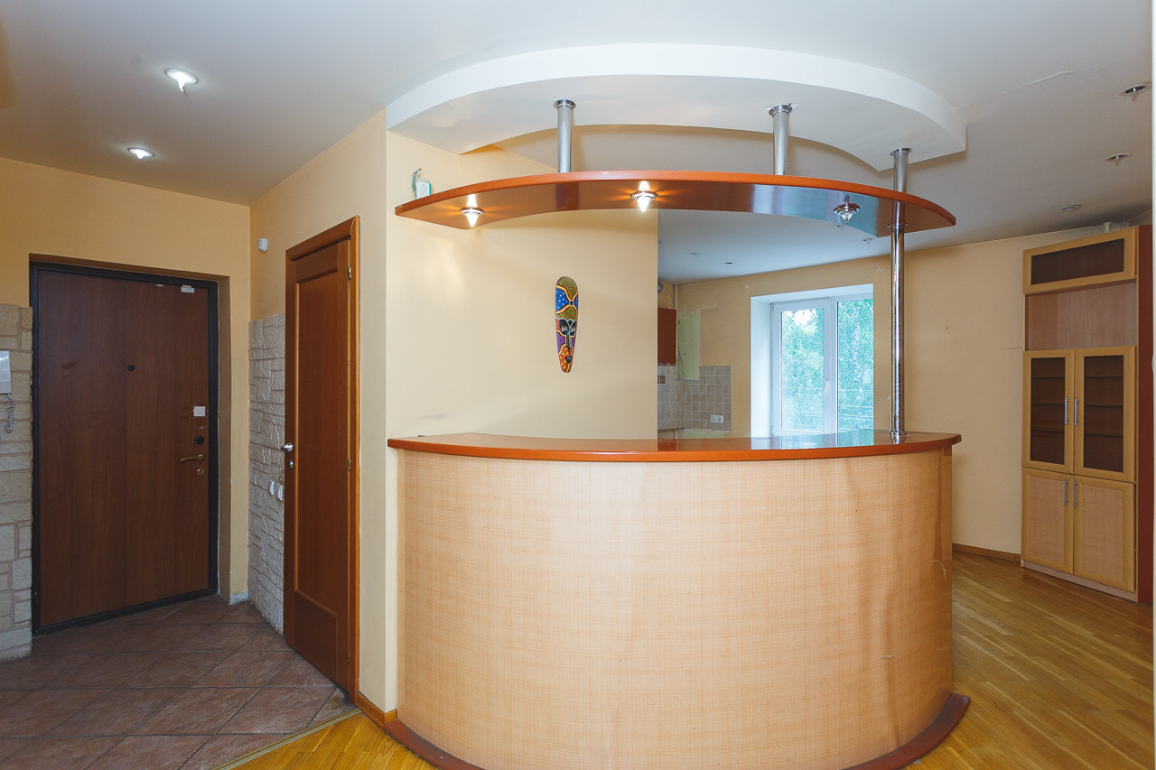 Особенности квартиры - увеличенные оконные проемы, просторный саунзел 10 м2 со своим окном, огромная гостиная 40 м2, высота потолка 2,70 м.