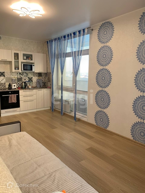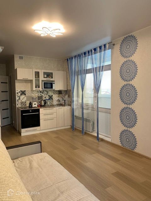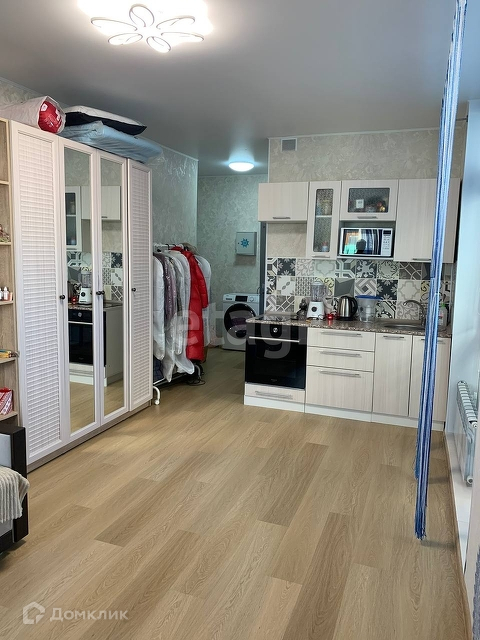 В квартире 2 окна, можно отделить кухонную зону от спальной.