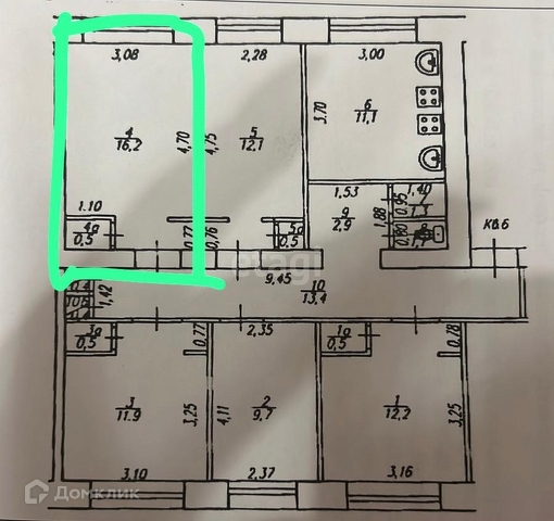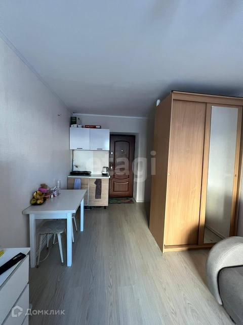 Общая площадь 16,2 м2. В комнате есть соя плита, кухонный гарнитур, частично мебель остается , возможность провести санузел.