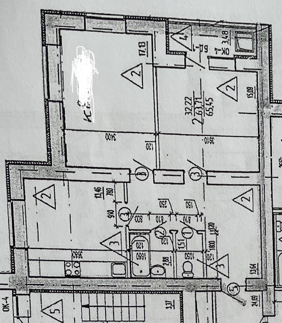 Общая площадь 65.5 м2 (с учетом лоджии), жилая 32.2 м2, кухня 13.5 м2 , комнаты: 17 м2,