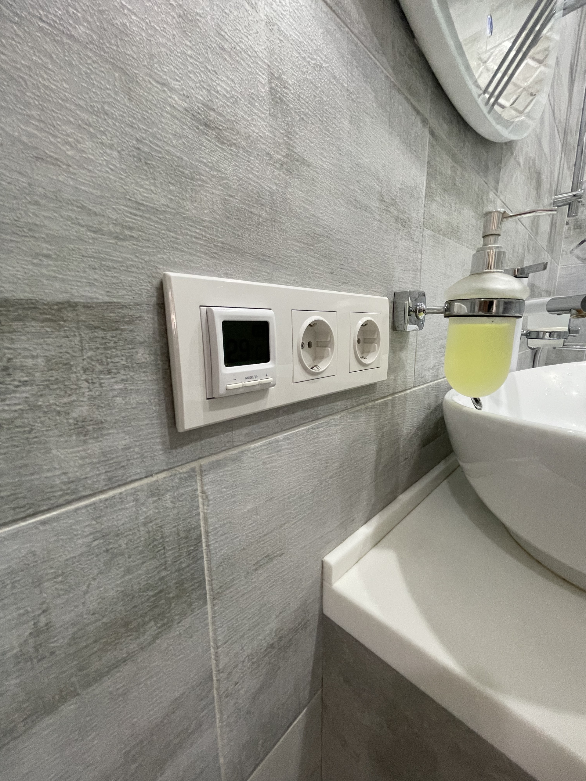 Установлен теплый пол в сан узле.