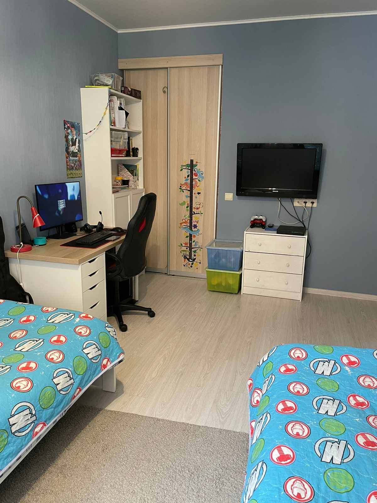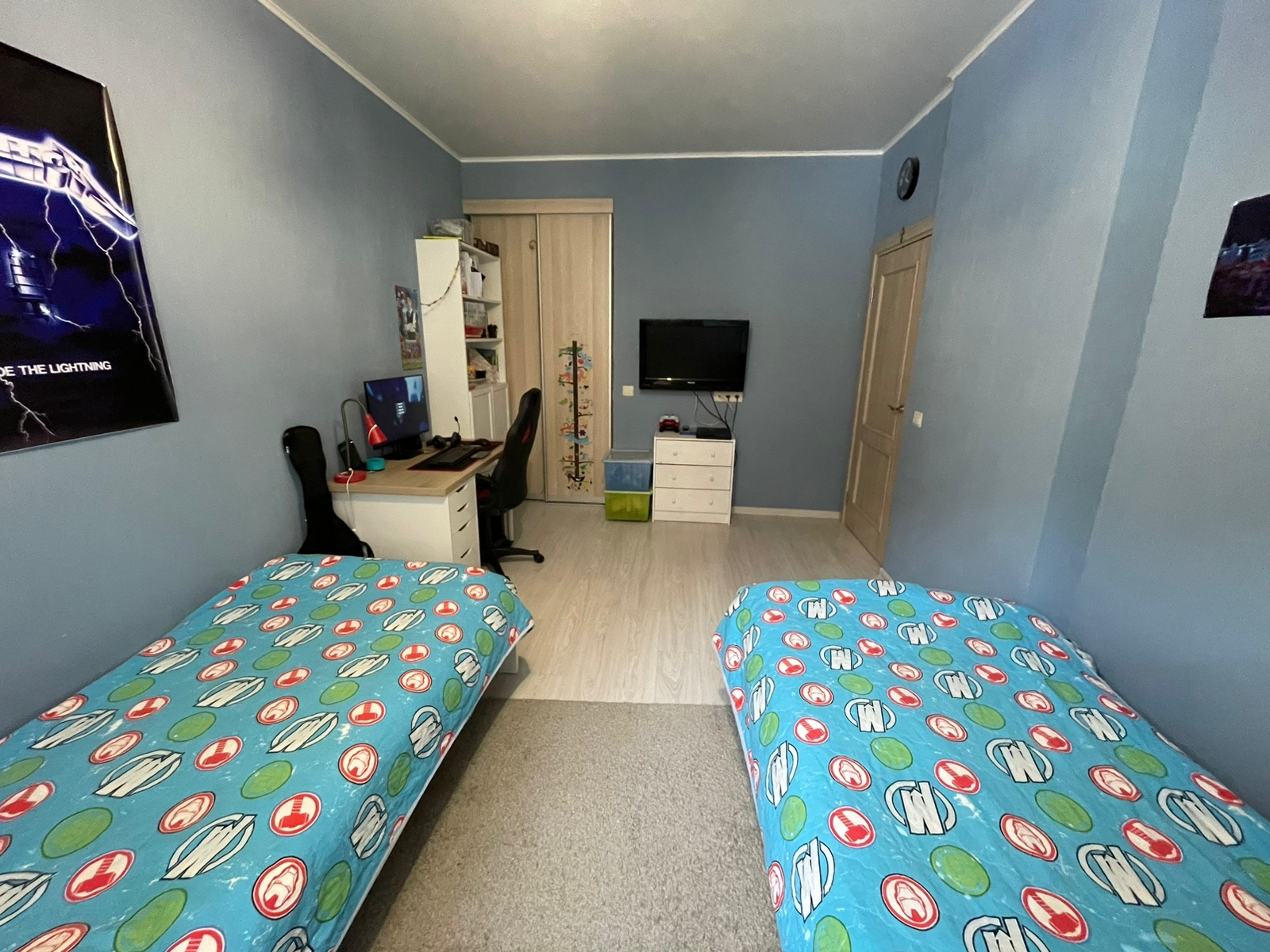 •    комната с гардеробной со встроенным стеллажами,