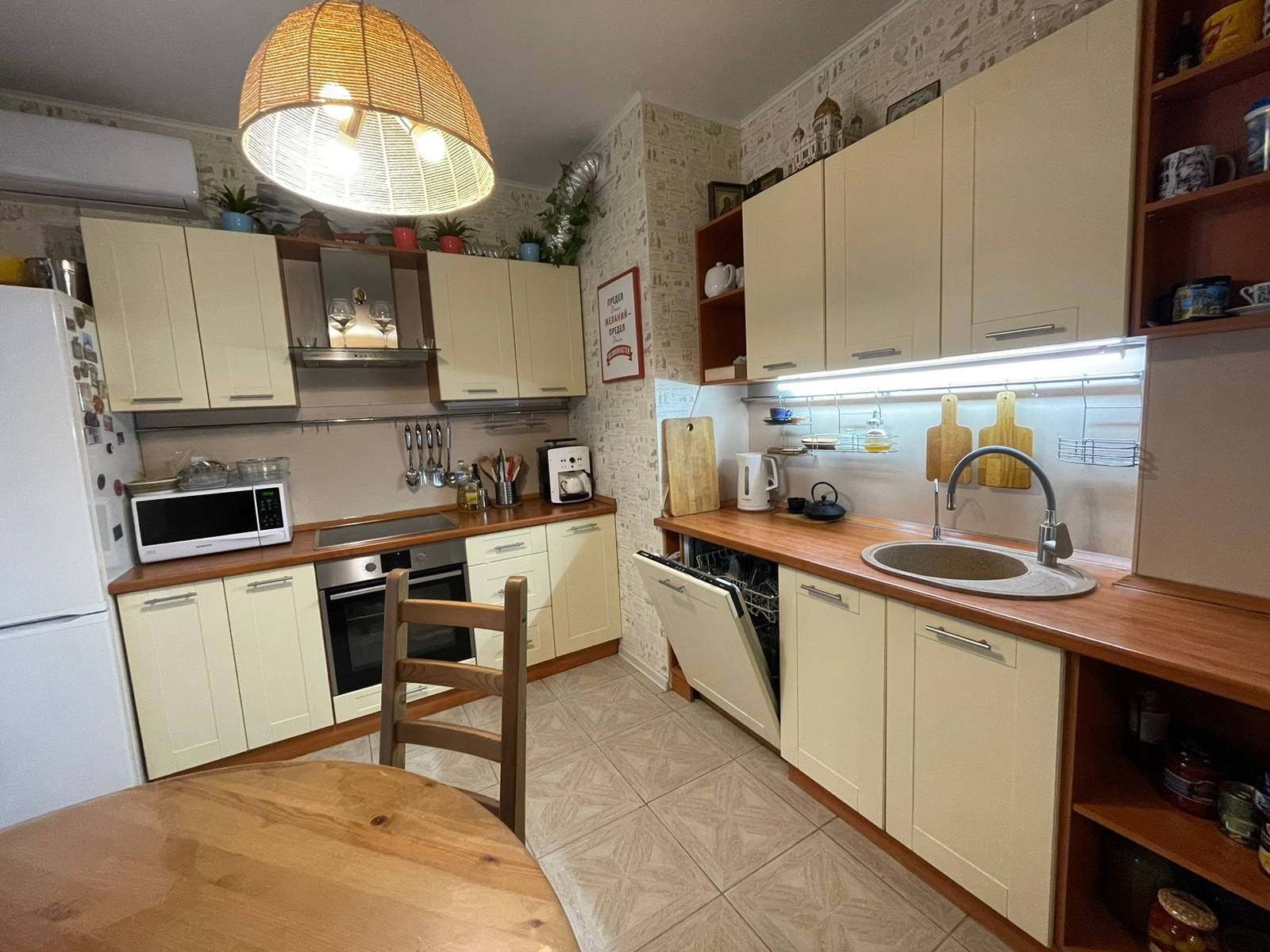Кухонный гарнитур с духовым шкафом, варочной поверхностью, полноразмерная ПММ Bosch.