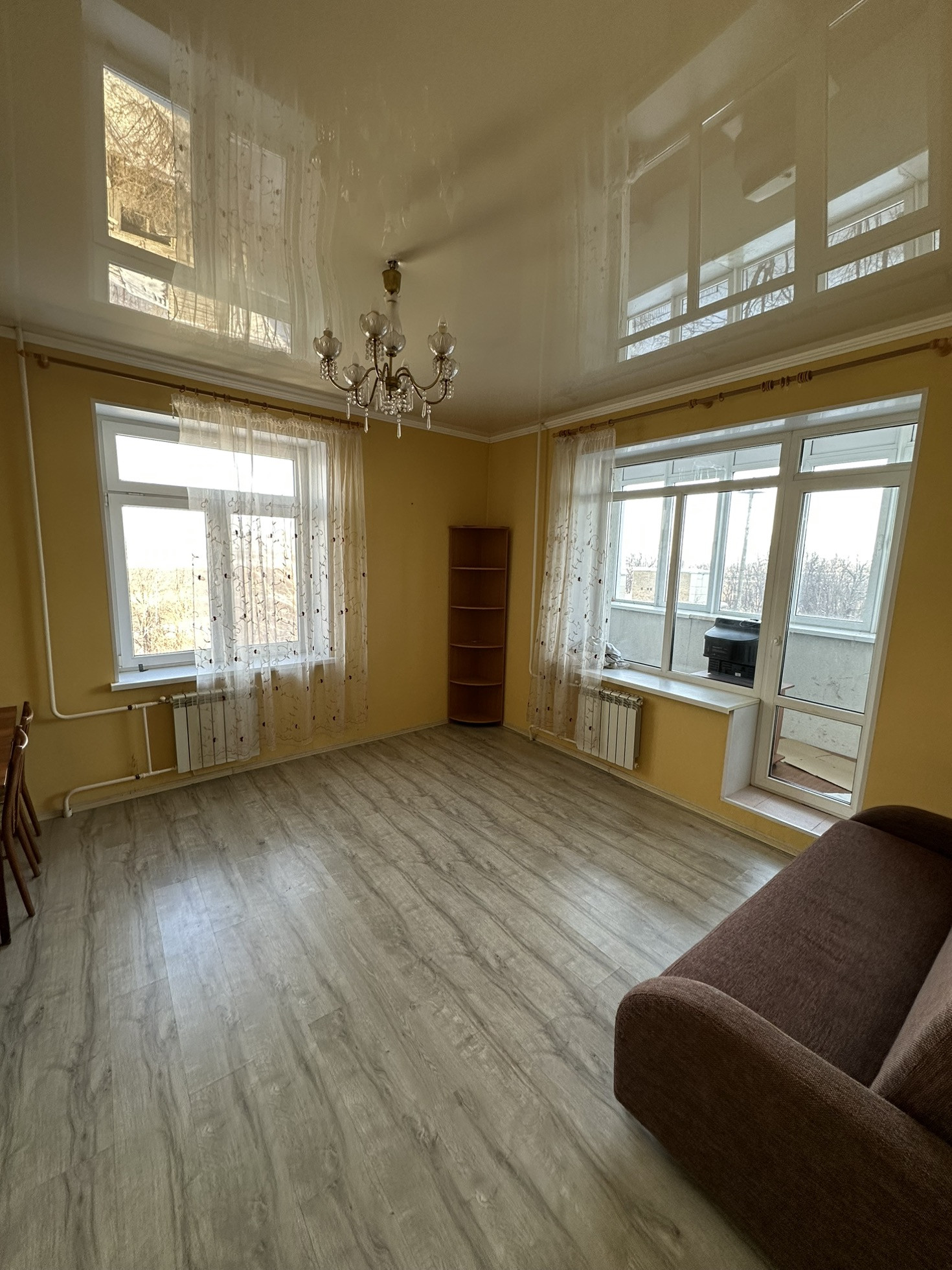 Изолированные комнаты. Большая кухня- 12,3 кв.м. Просторный коридор - 19 кв.м. Раздельный санузел. На полу в коридоре, ванной, санузле - кафель. В комнатах - ламинат.